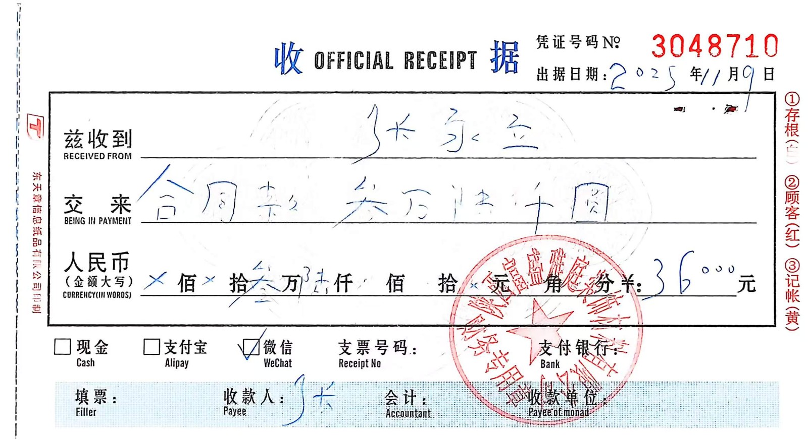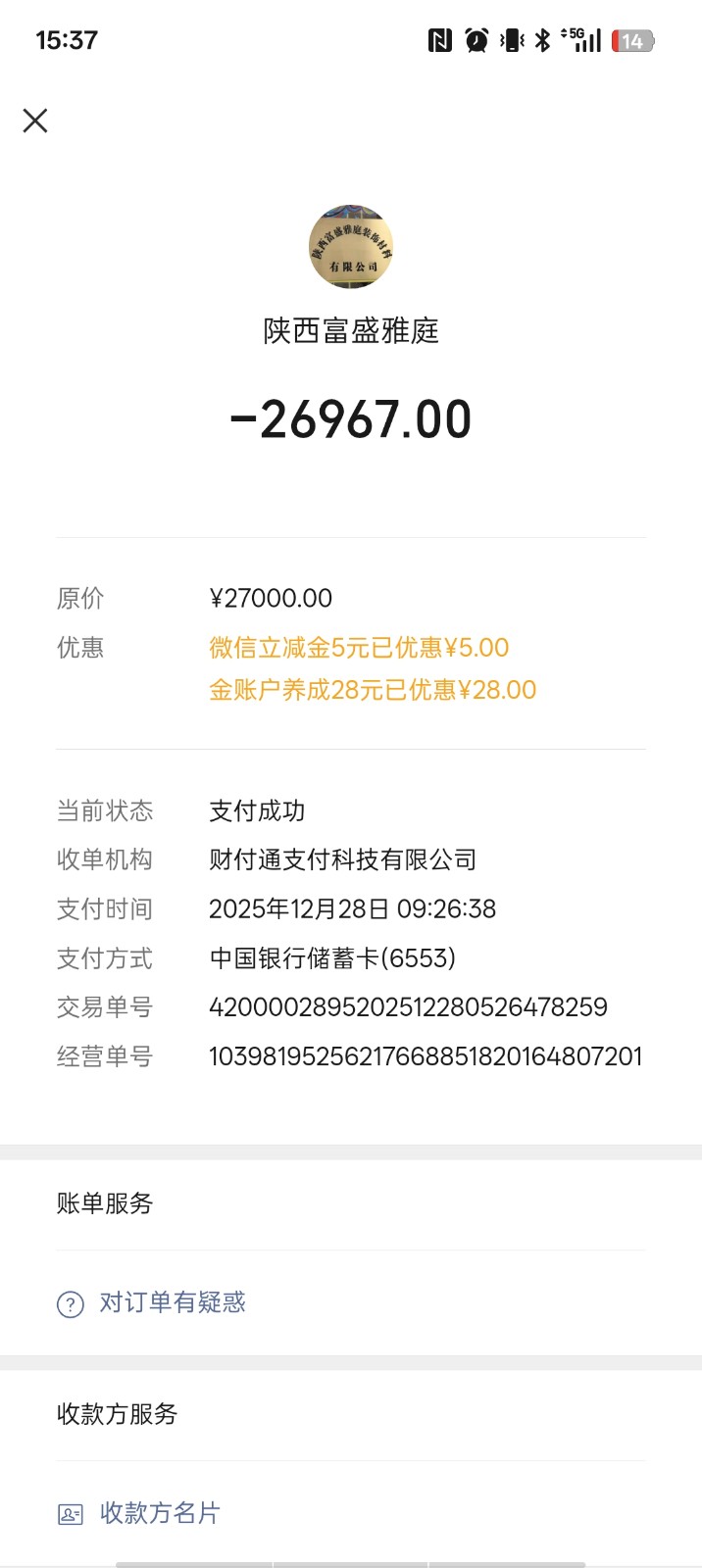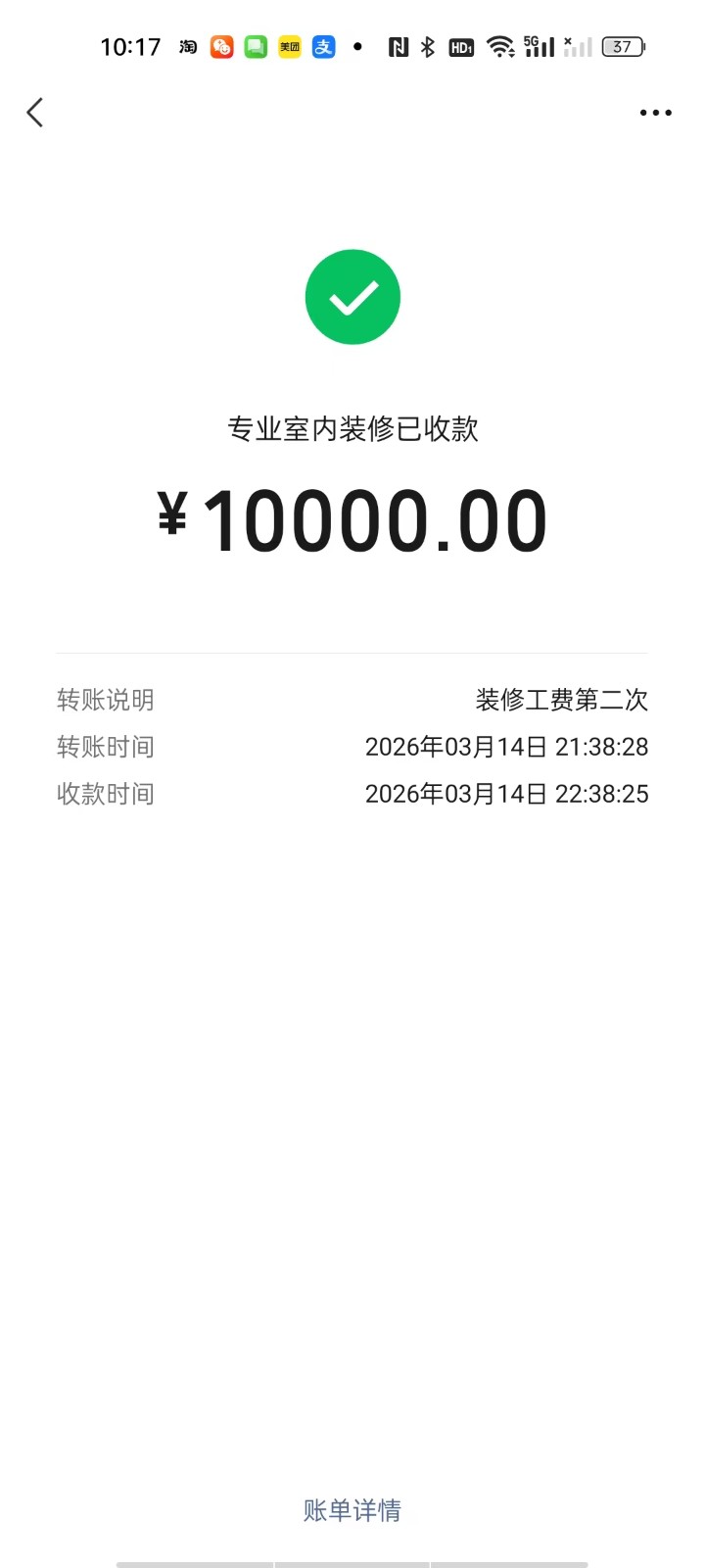 1. 签约与付款:我在抖音看到其“样板间全屋整装”广告后,与该公司签订合同。目前已累计支付该厂家65000元。签约前该公司承诺700元/平方,测量面积为100㎡,合同款70000元,在此基础上可获得30%的软装补贴,加上量完房后补缴36000元,额外获得10000元软装、电器补贴。