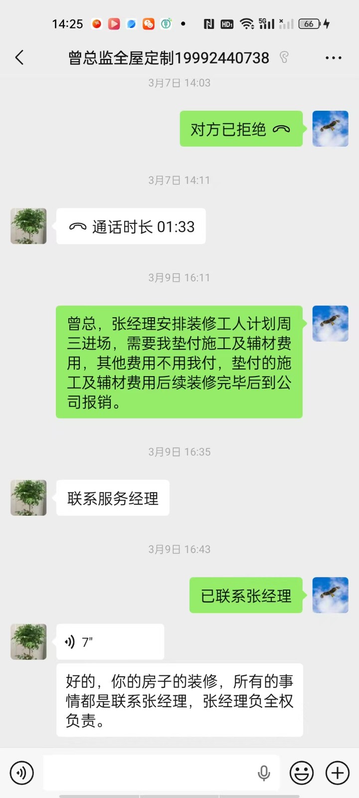 3. 人工费纠纷:签约时承诺“一站式服务”,但施工阶段却告知合同不含人工费,需要我先期支付工人施工费,后期依据转账记录厂家报销。