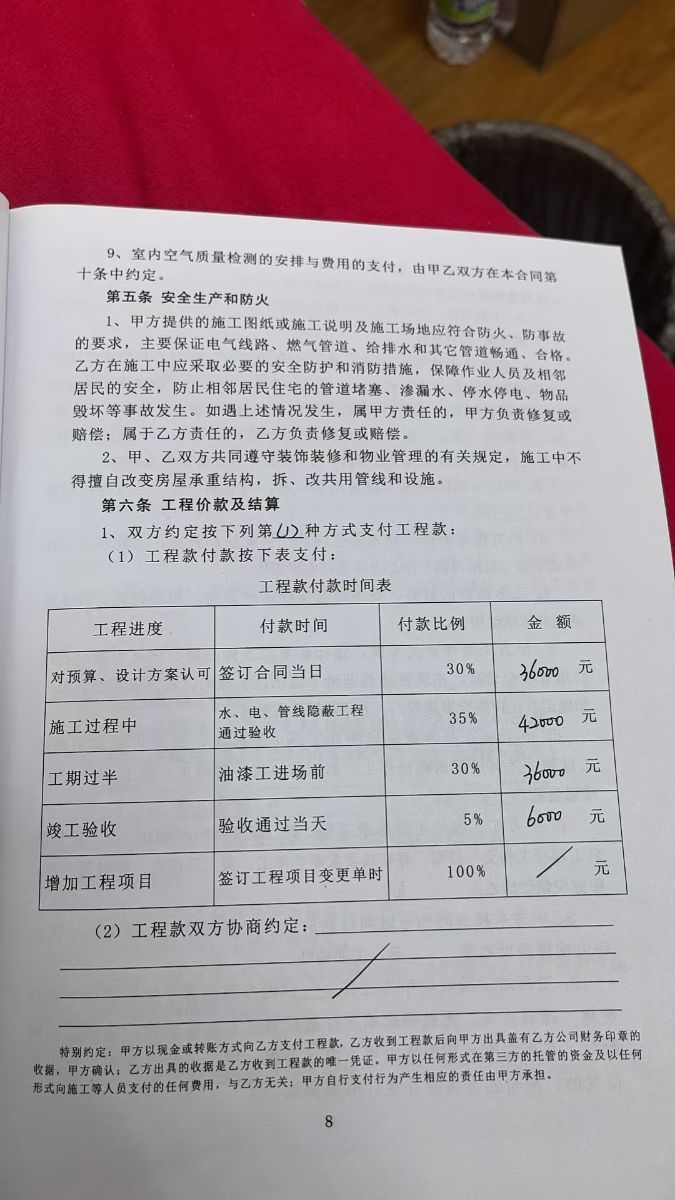 为了工程进度如期进行,水电结束之后,2026年2月9号,按照合同,我们付了二期款(42000元,截止当天,我们一共付了78000元)
