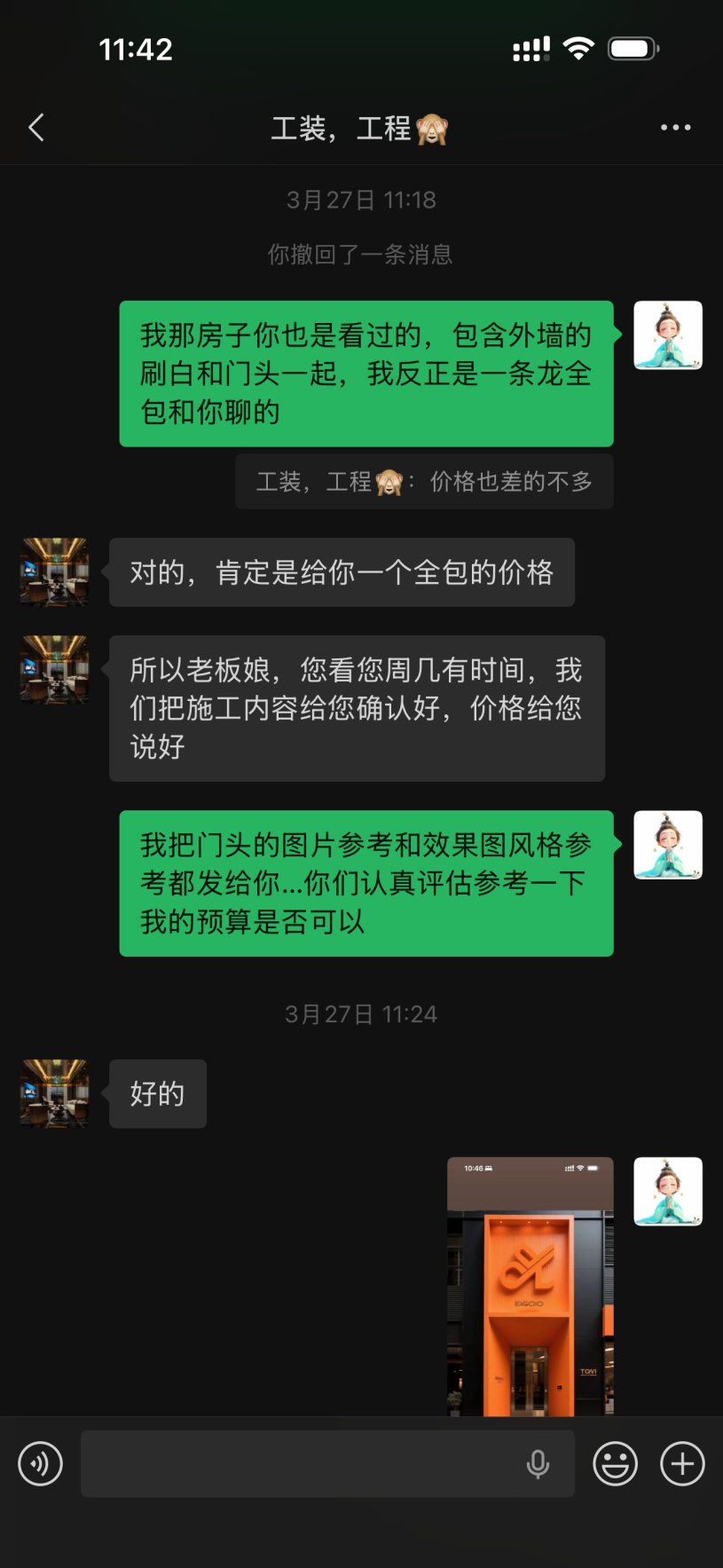 本人于2026年4月7日与被投诉方签订《装修承包合同》,委托其承包本人名下位于江苏省南通市的房屋装修工程,建筑面积105.4平方米,全包一条龙约定包工包料,合同最终折扣总价68,000元,合同要求签约后立即支付总价75%的预付款(约51000元),本人已累计支付约51000元。工期为2026年4月8日至4月23日,仅15天。