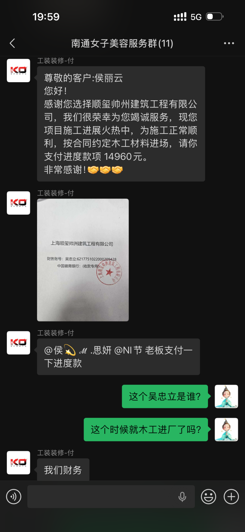5. 收款账户异常:前两笔款打入公司账户,第三笔突然要求转入吴忠立个人账户(621775102200029***),试图规避资金监管。