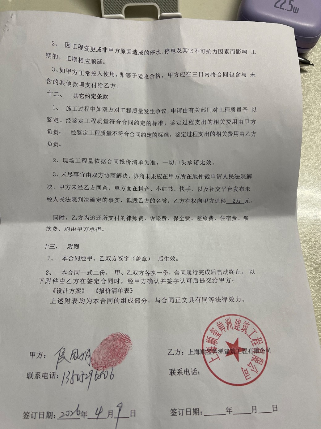 - 付款后立刻出4万+增项单(比合同价翻倍)