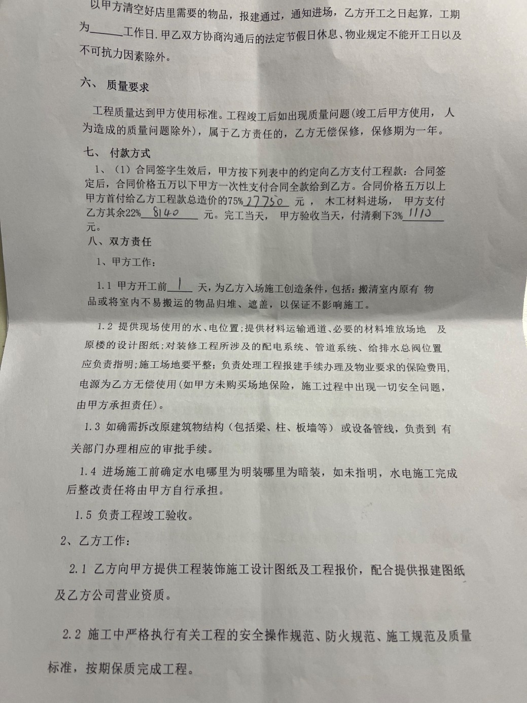 - 拆旧刚开工,公司强制付95%全款(不付就赔5000元)