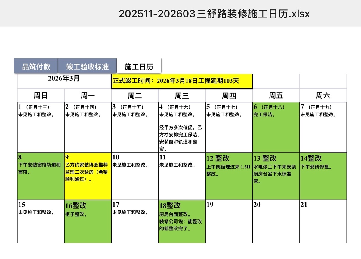 装修公司以春节放假工人回家过年为由拖延至春节后在业主多次催促下