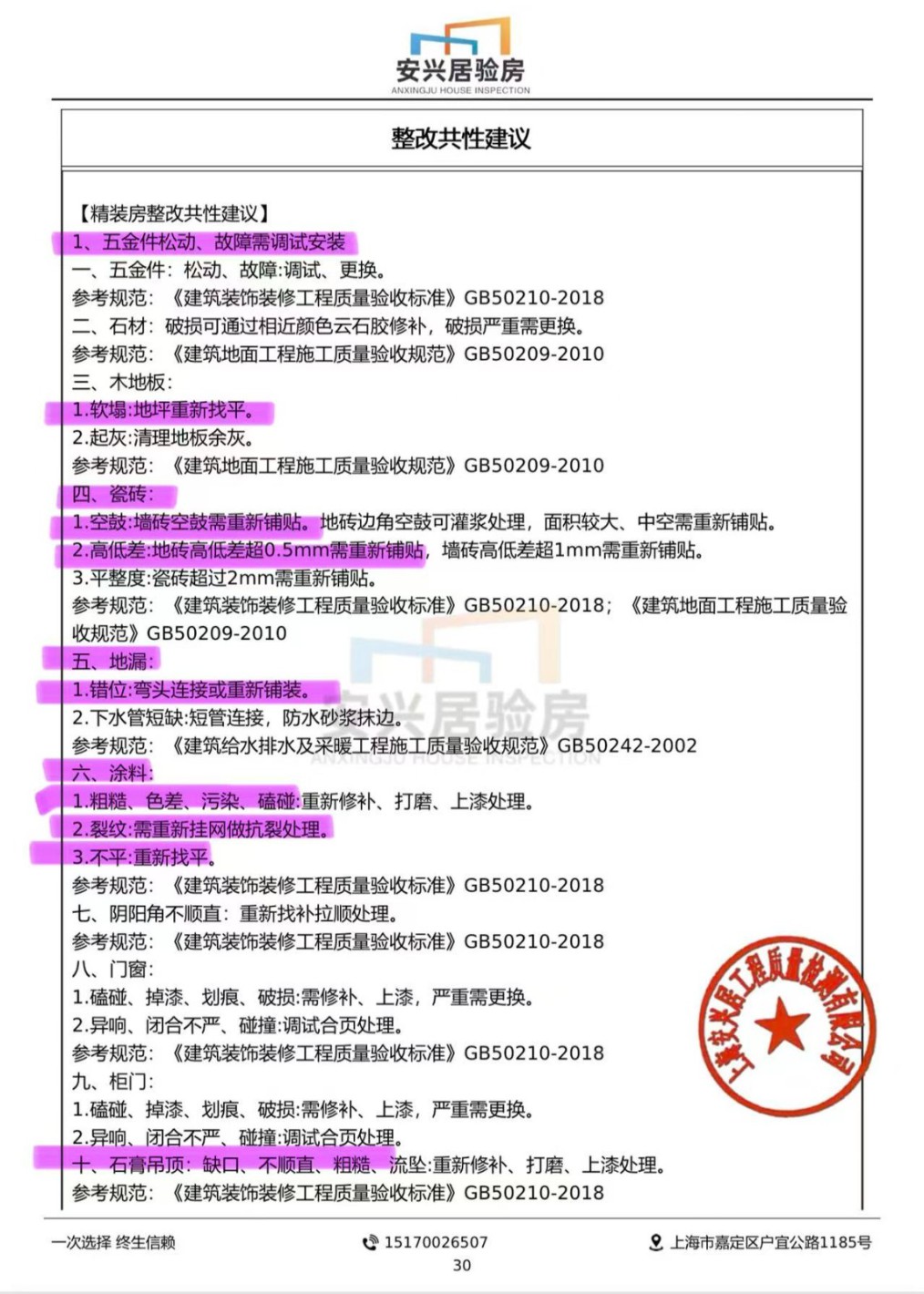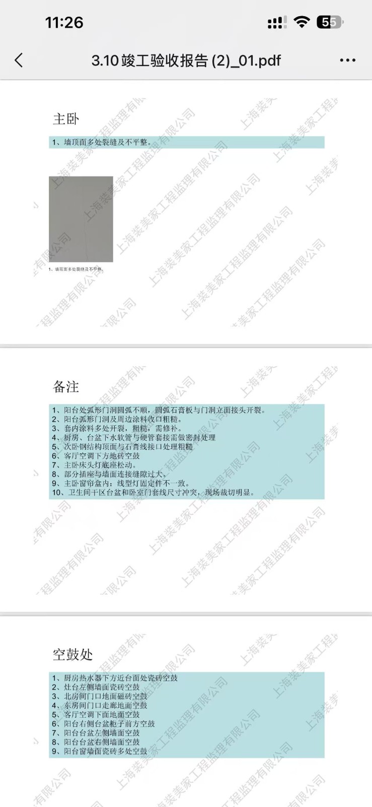 2026.1.28第一次装修完工验房(图片附验房师整改建议的主要部分)