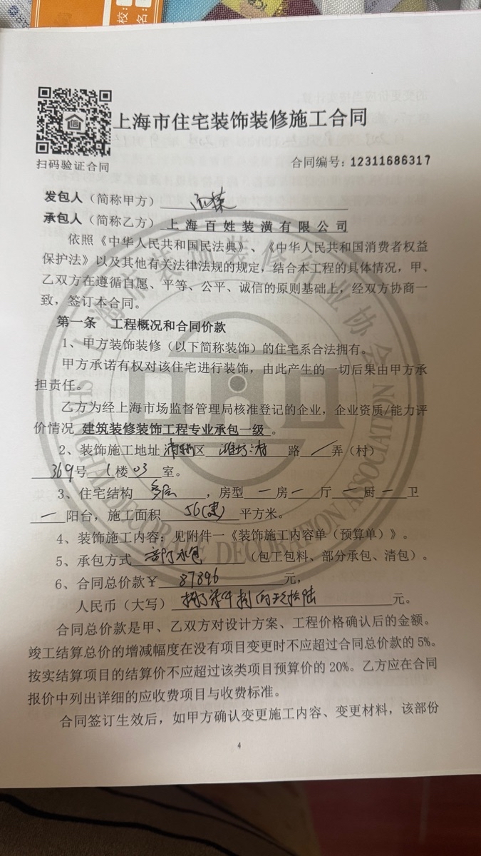 | 装修面积 | 56m² | 投诉人手机 | 1364199**** | 被投诉人手机 | 1391806**** |