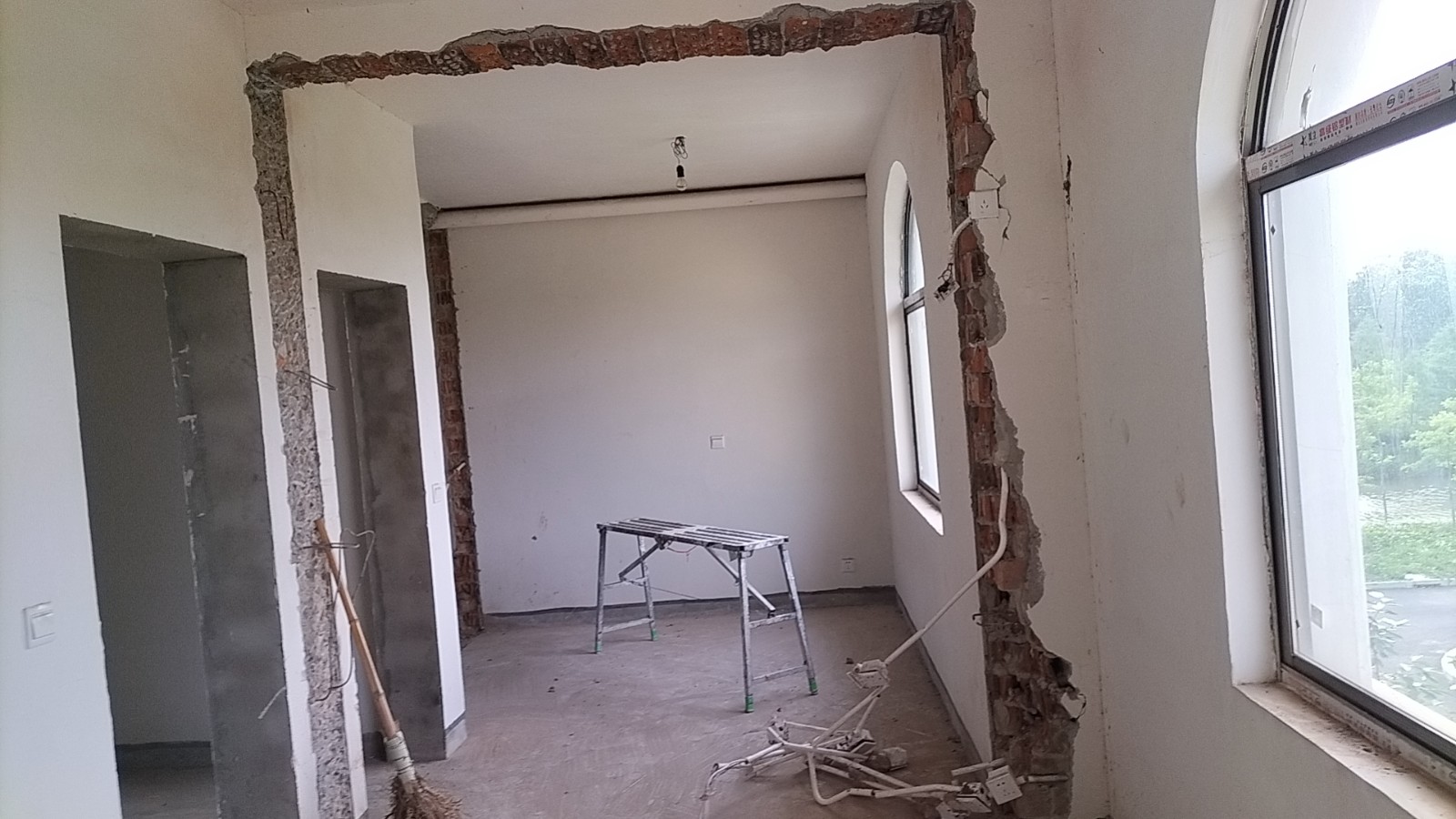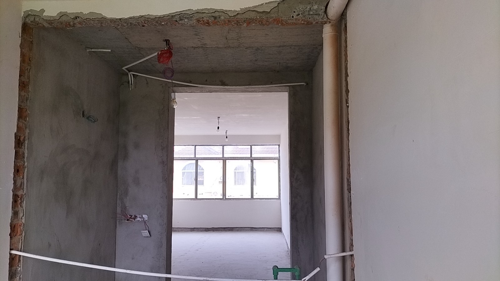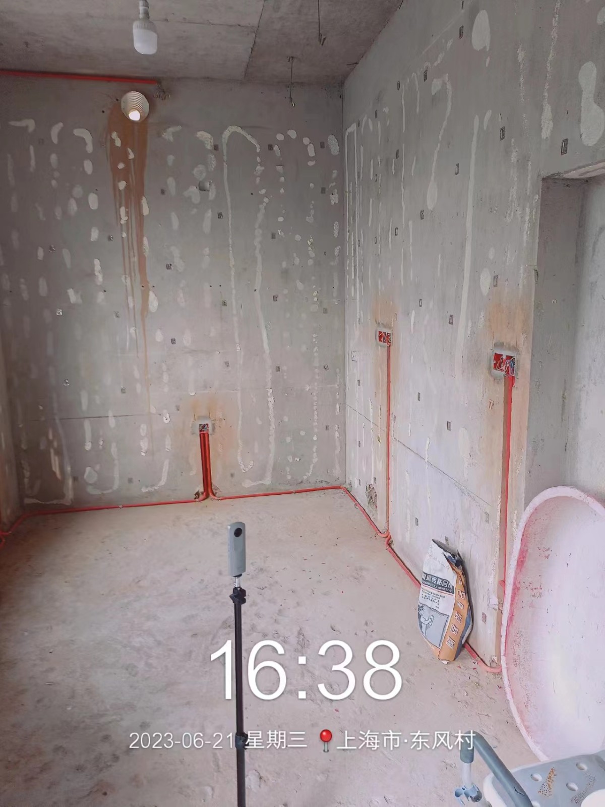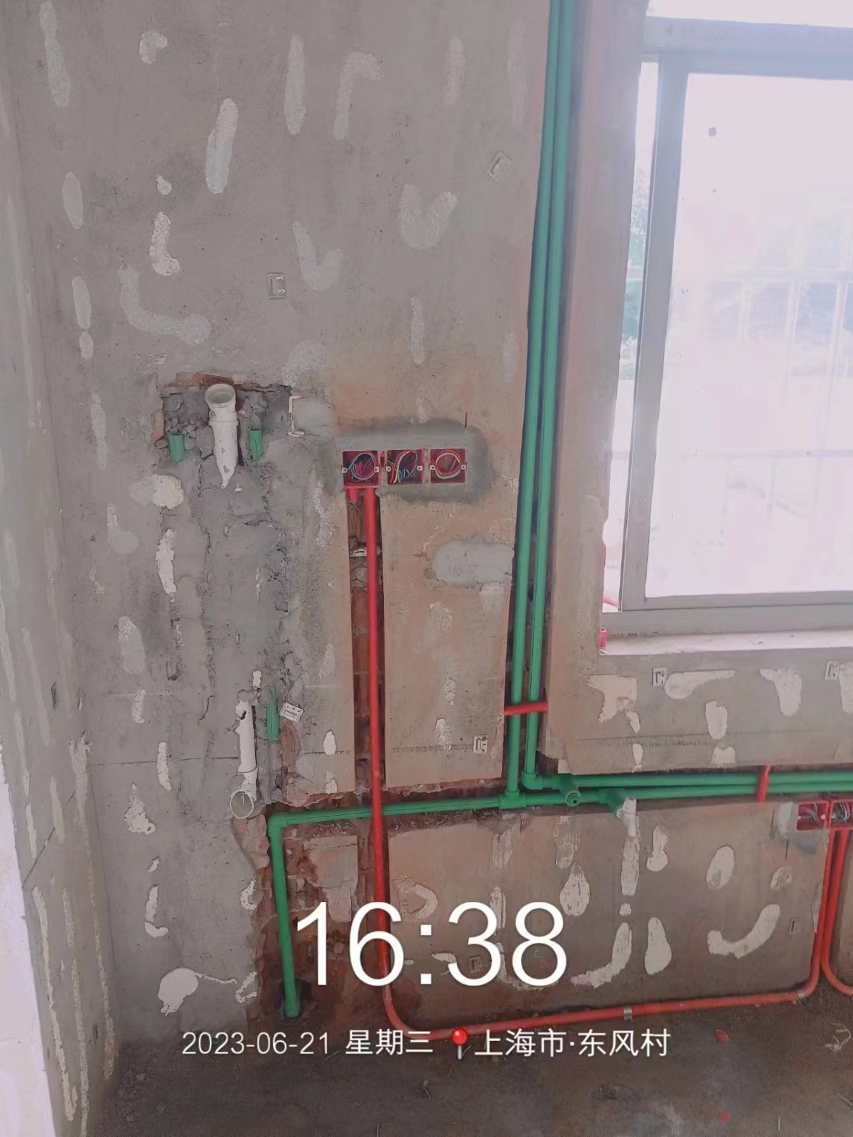 全部房间开槽已全部确定。业主将厨房原本的局改,到现在的决定全部拆除,拆完,就可以安排水电。