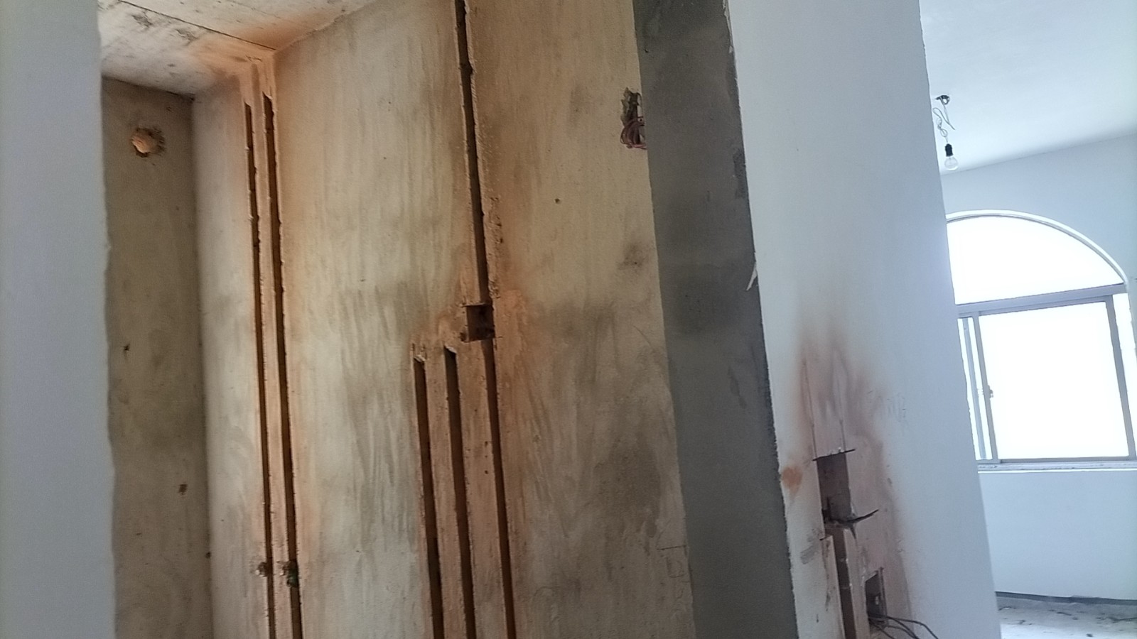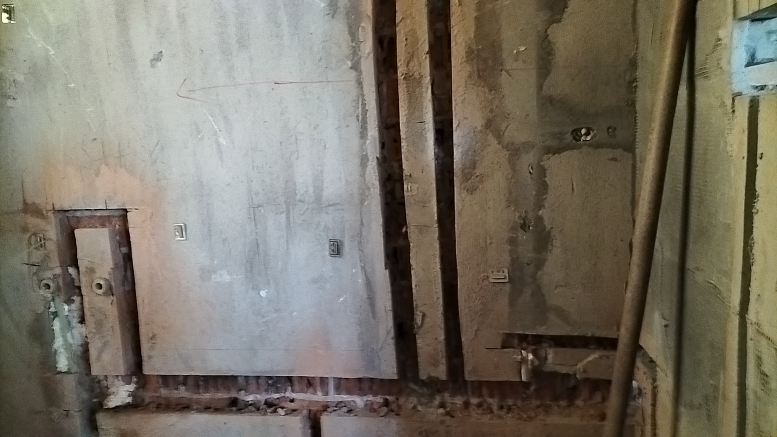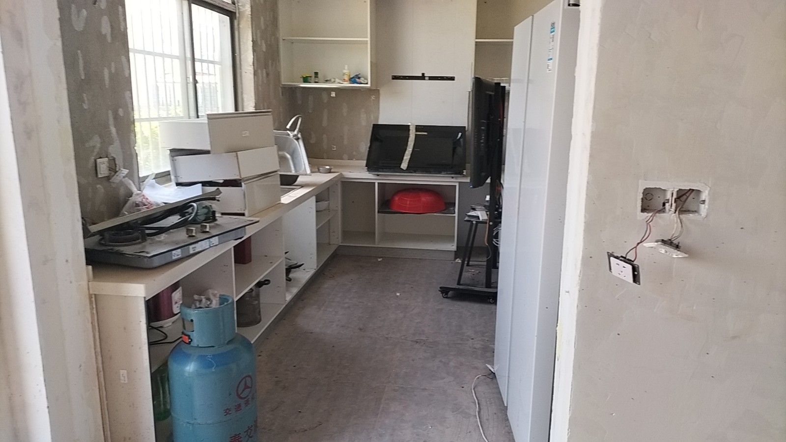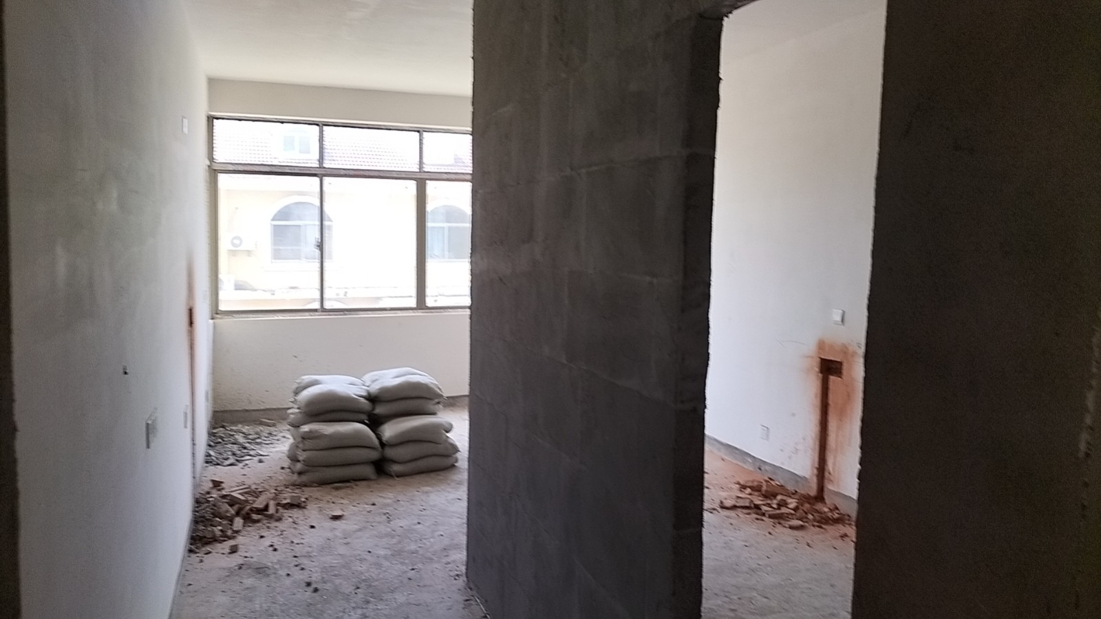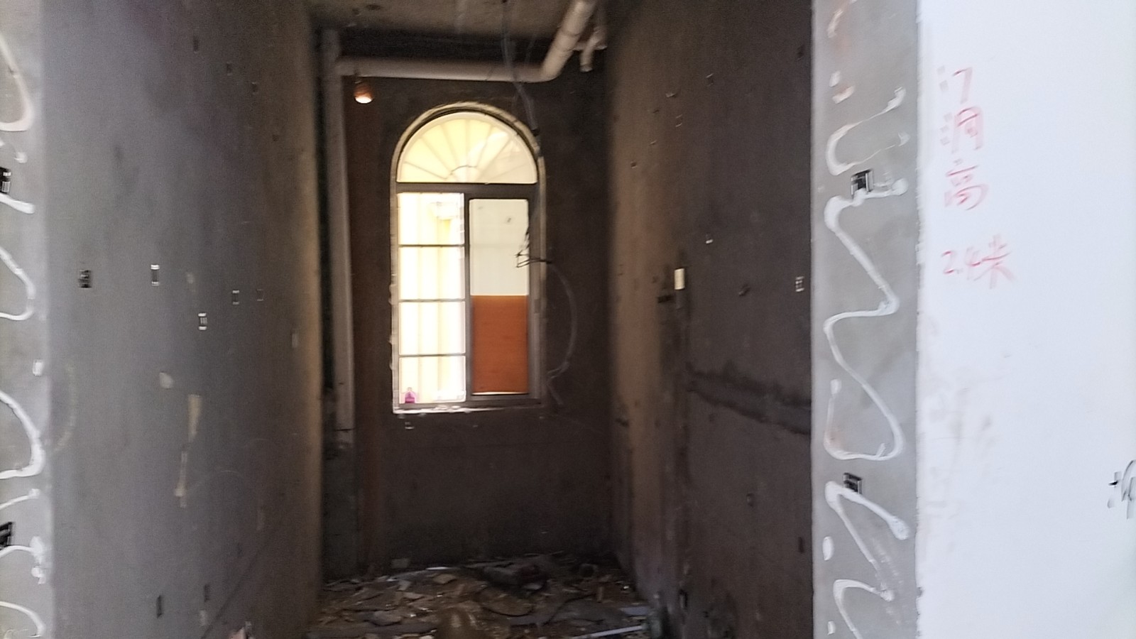 全部房间开槽已全部确定。业主将厨房原本的局改,到现在的决定全部拆除,拆完,就可以安排水电。