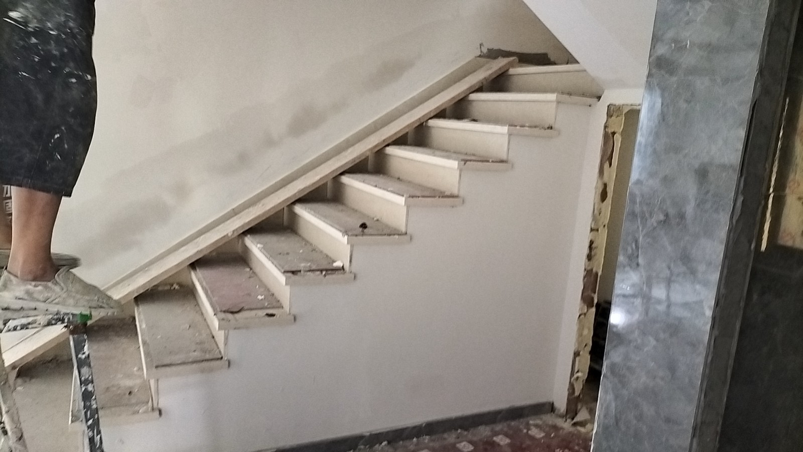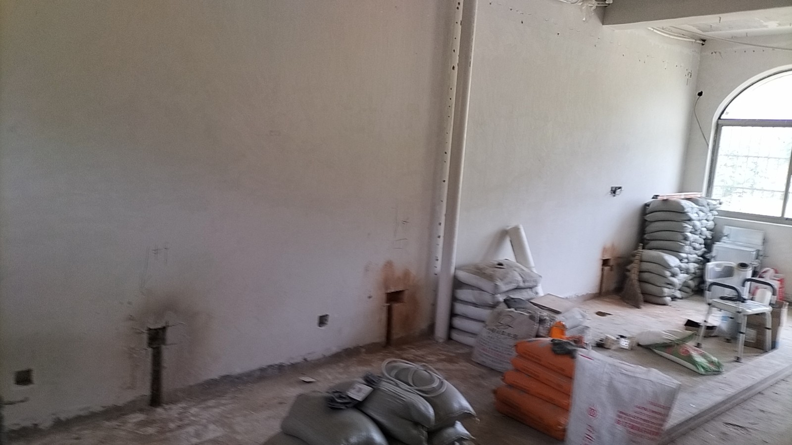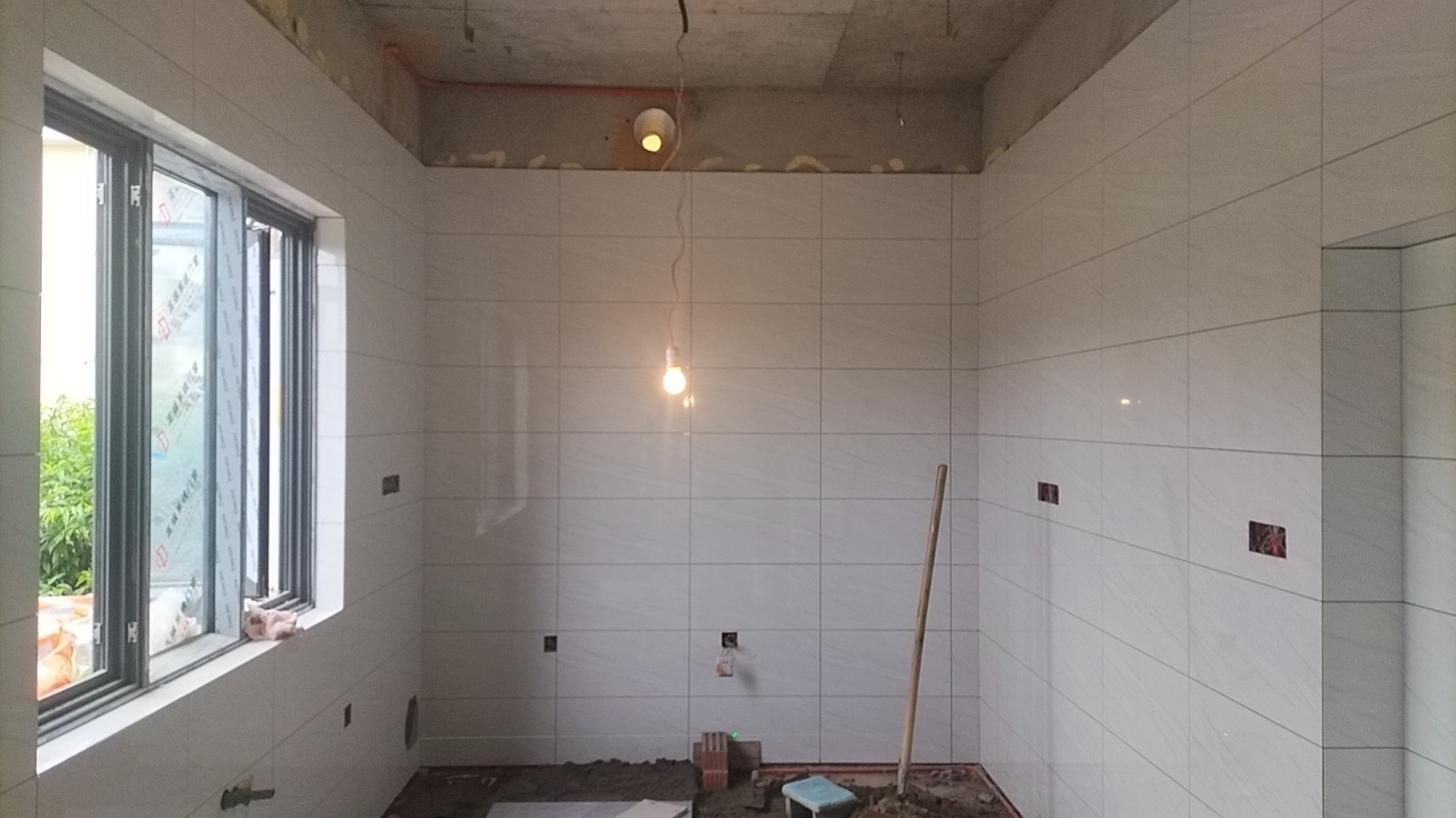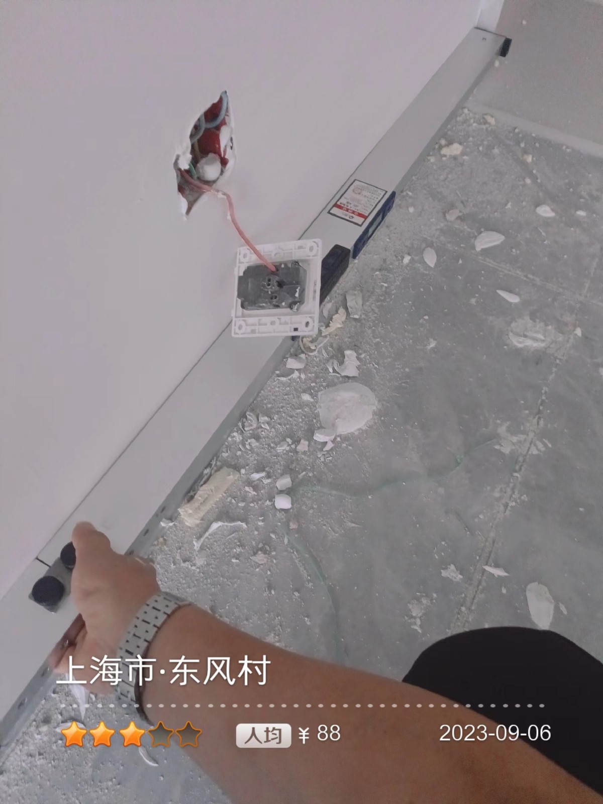 全部房间开槽已全部确定。业主将厨房原本的局改,到现在的决定全部拆除,拆完,就可以安排水电。