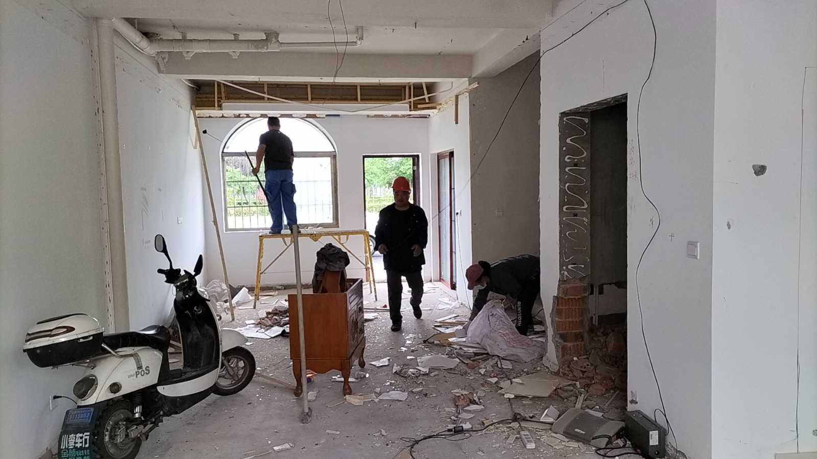 2023年5月17日,施工方为洁尚装饰(集团)有限公司,现在的施工队长是慈龙平队长,开工后施工人员按照施工图纸正在进行拆除。