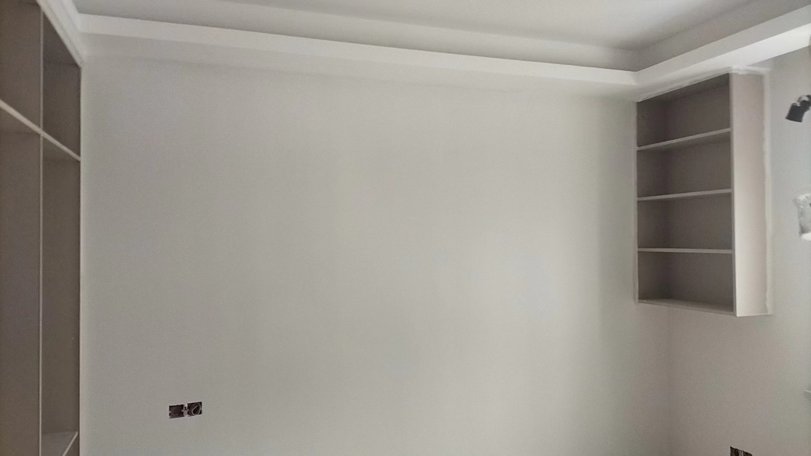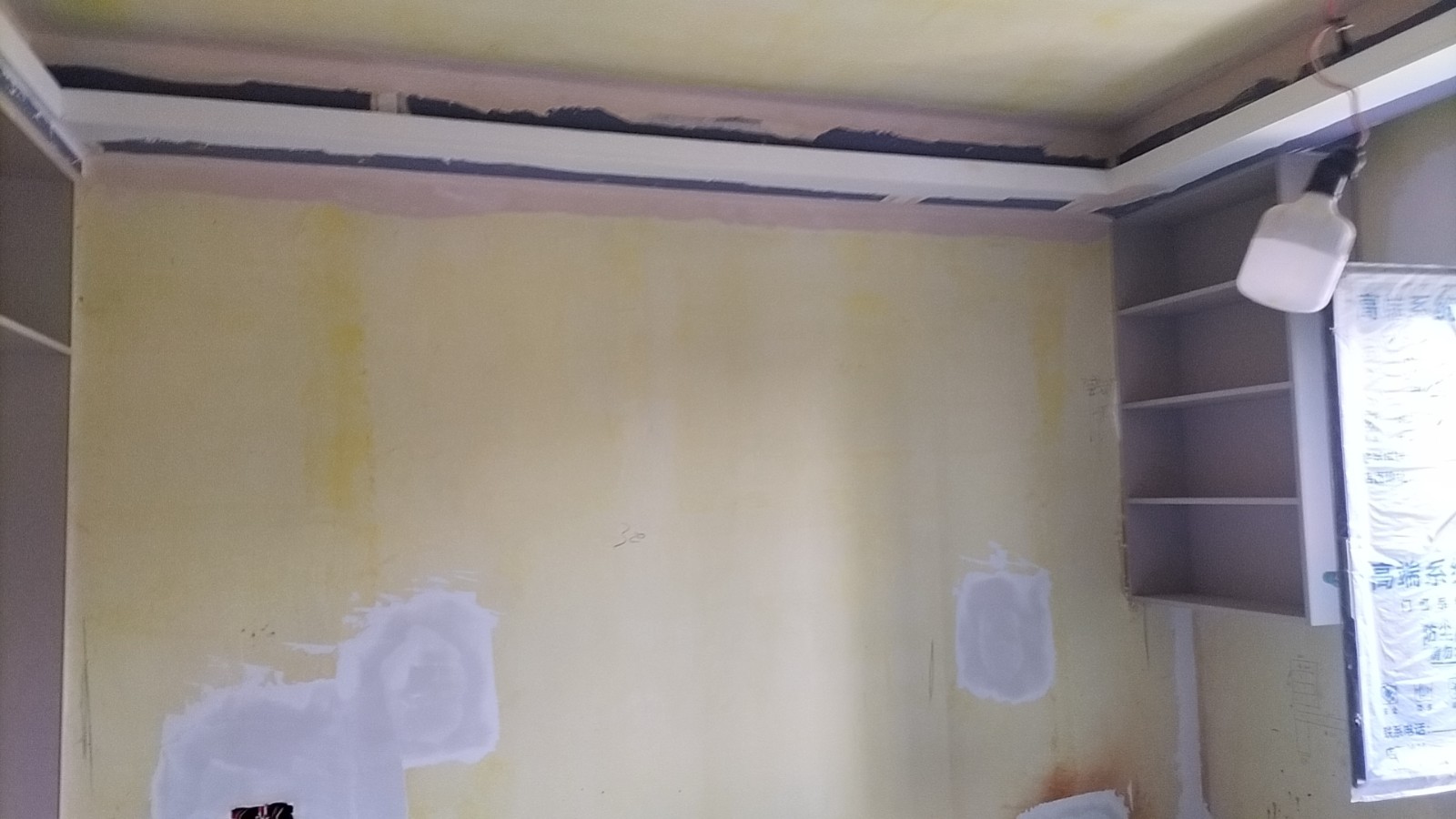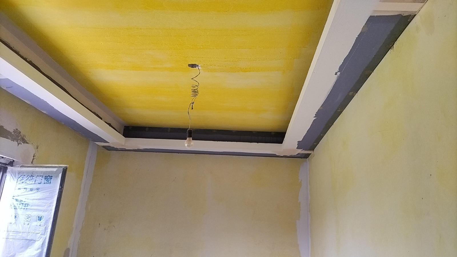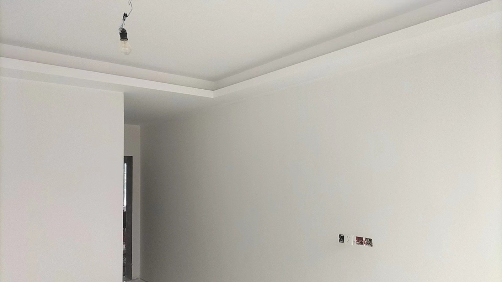 施工阶段:油漆阶段,腻子打磨完成,进入刷涂料阶段。墙面正常度,阴阳角垂直度,顶面和前面分界线平衡,清晰。