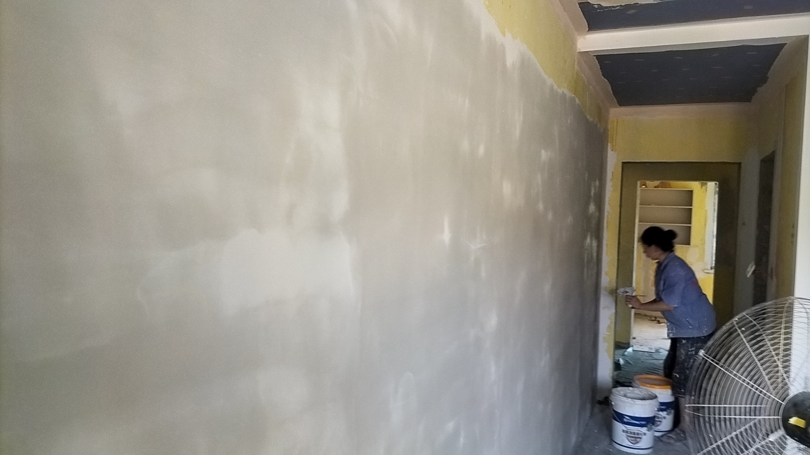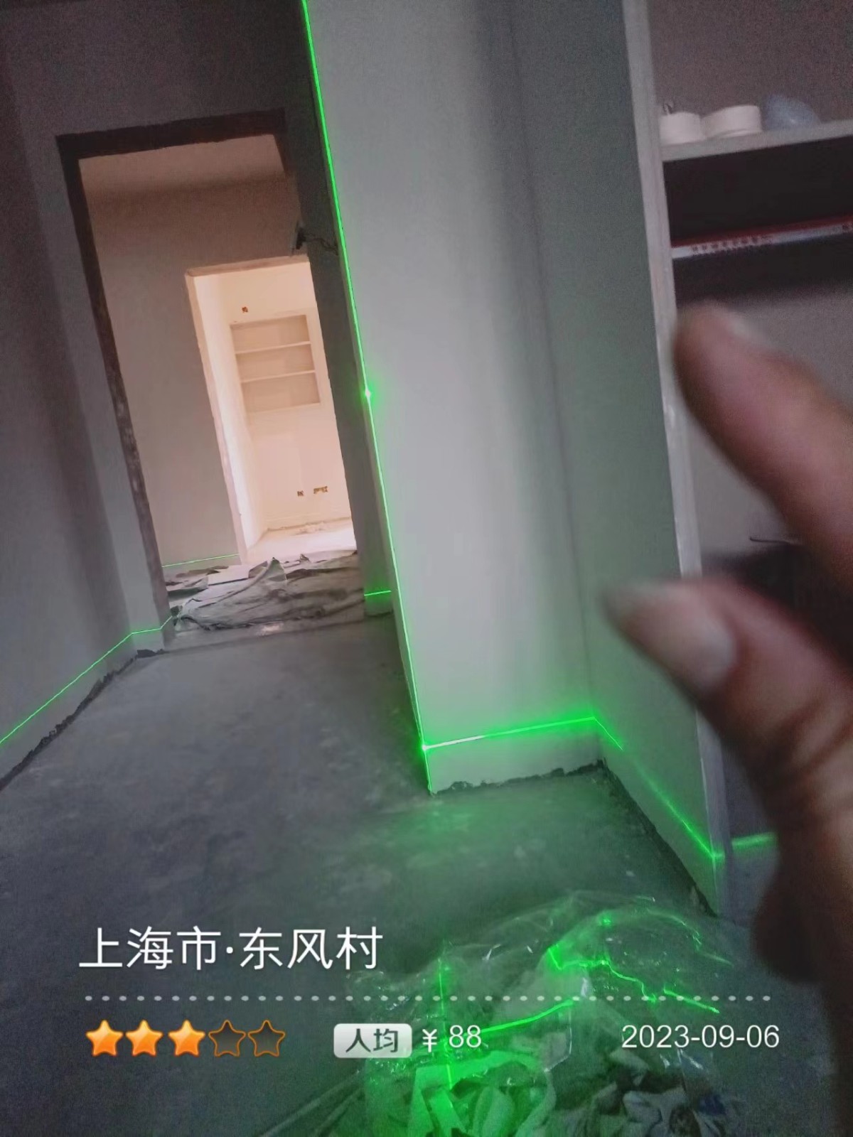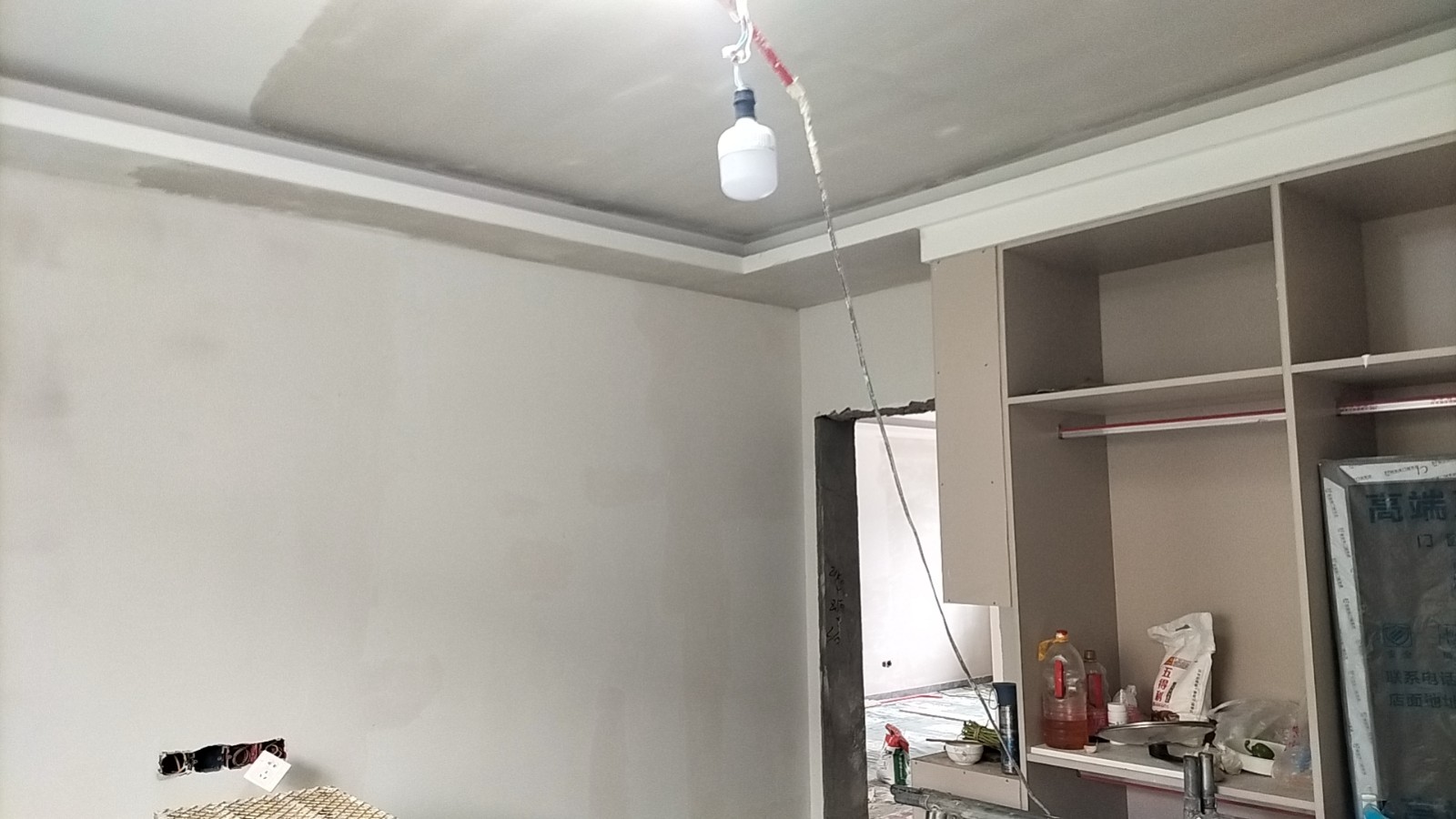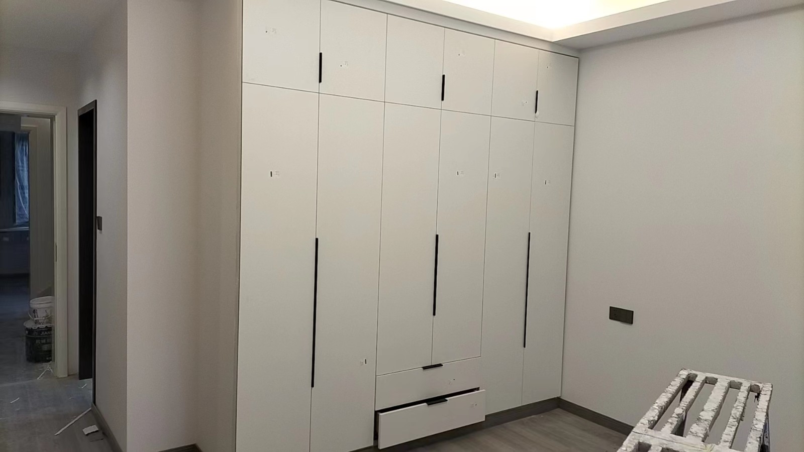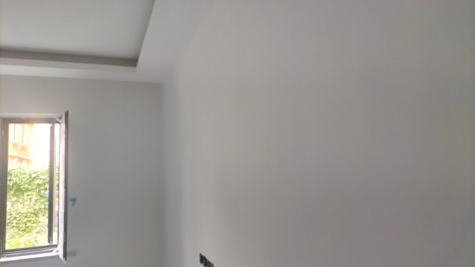 施工阶段:油漆阶段,腻子打磨完成,进入刷涂料阶段。墙面正常度,阴阳角垂直度,顶面和前面分界线平衡,清晰。