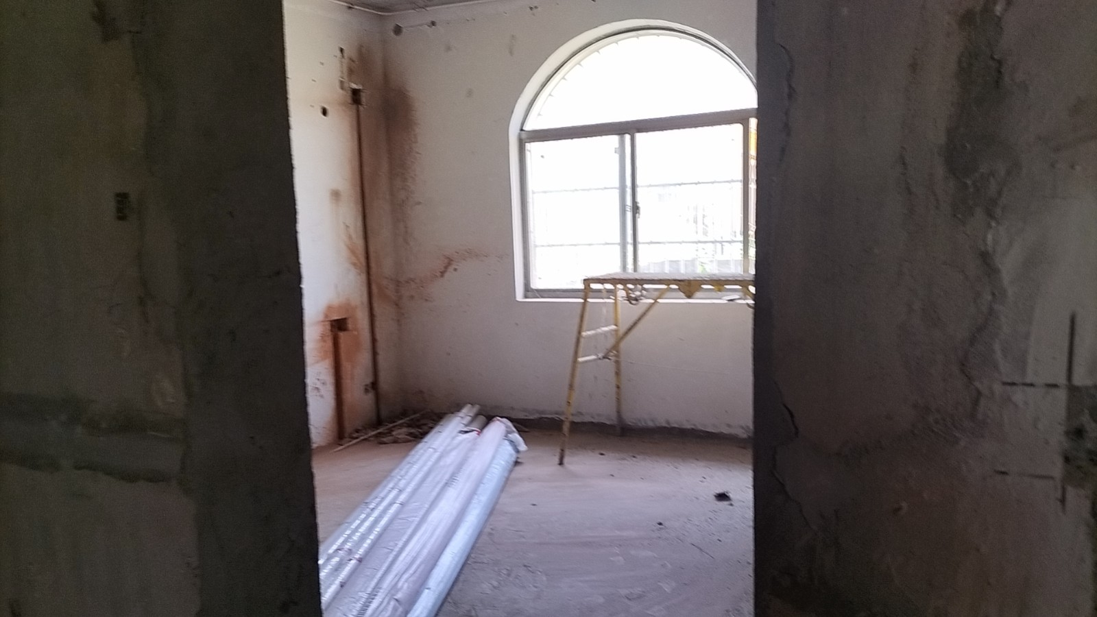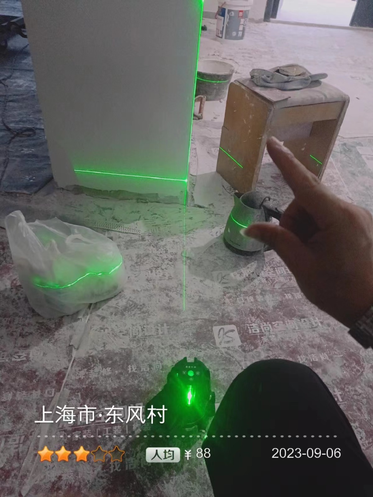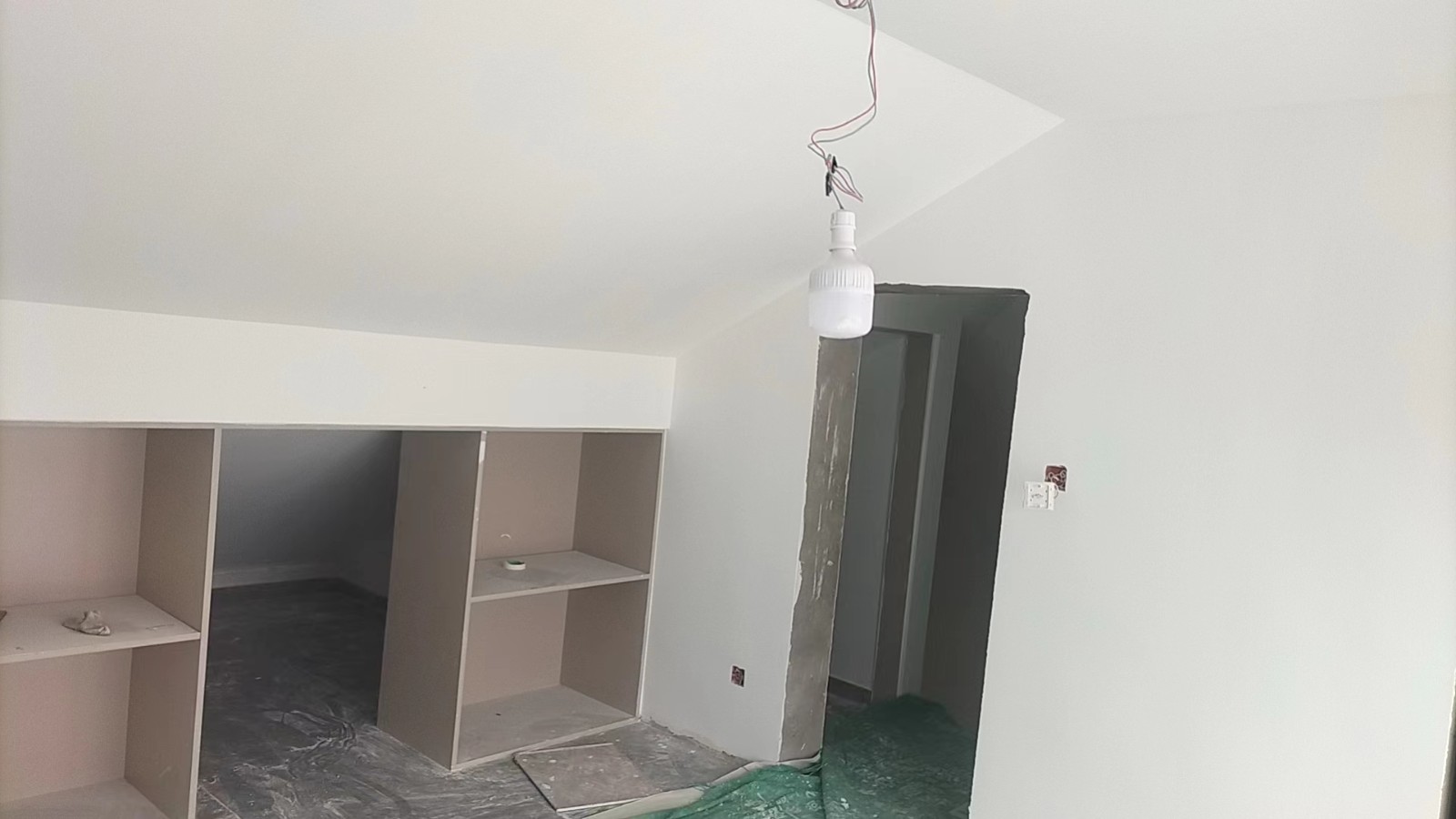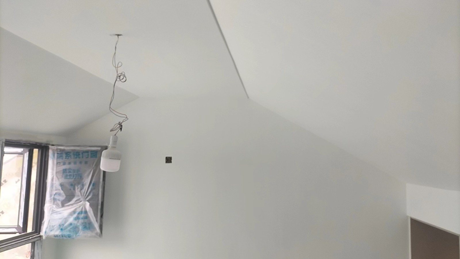 施工阶段:油漆阶段,腻子打磨完成,进入刷涂料阶段。墙面正常度,阴阳角垂直度,顶面和前面分界线平衡,清晰。