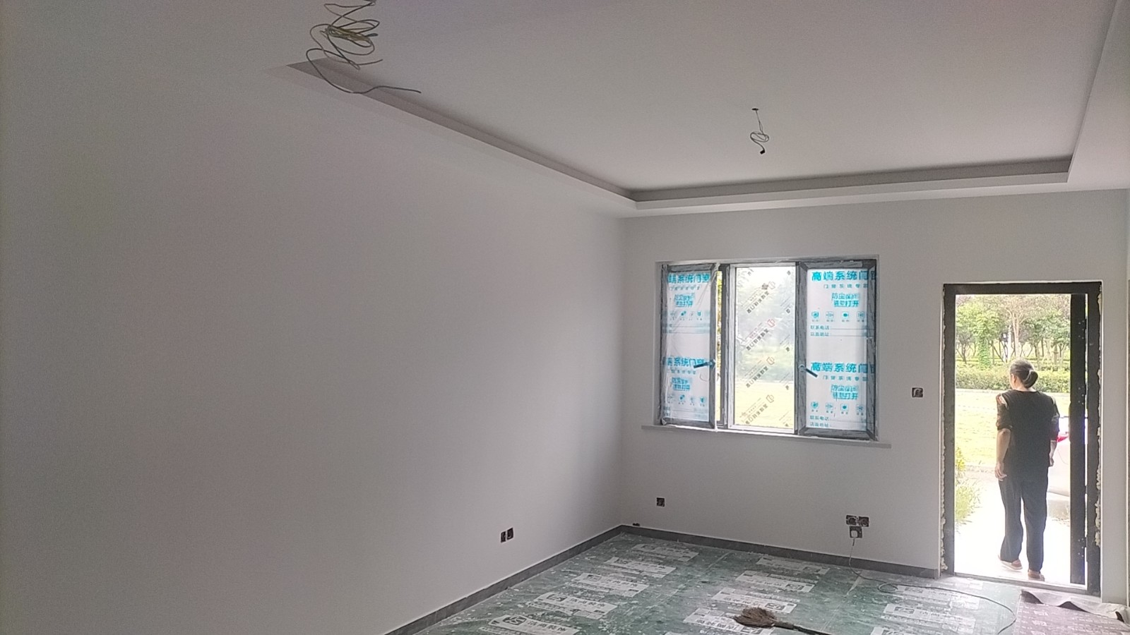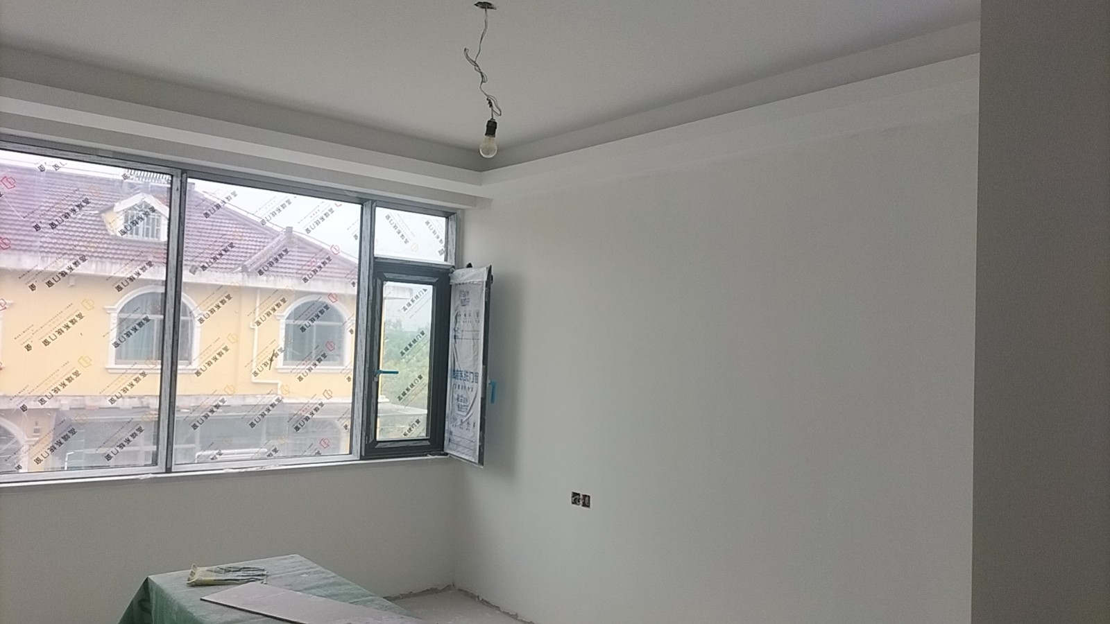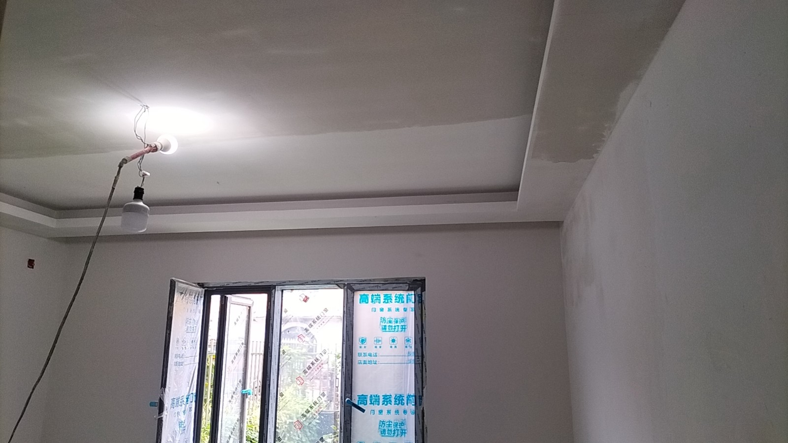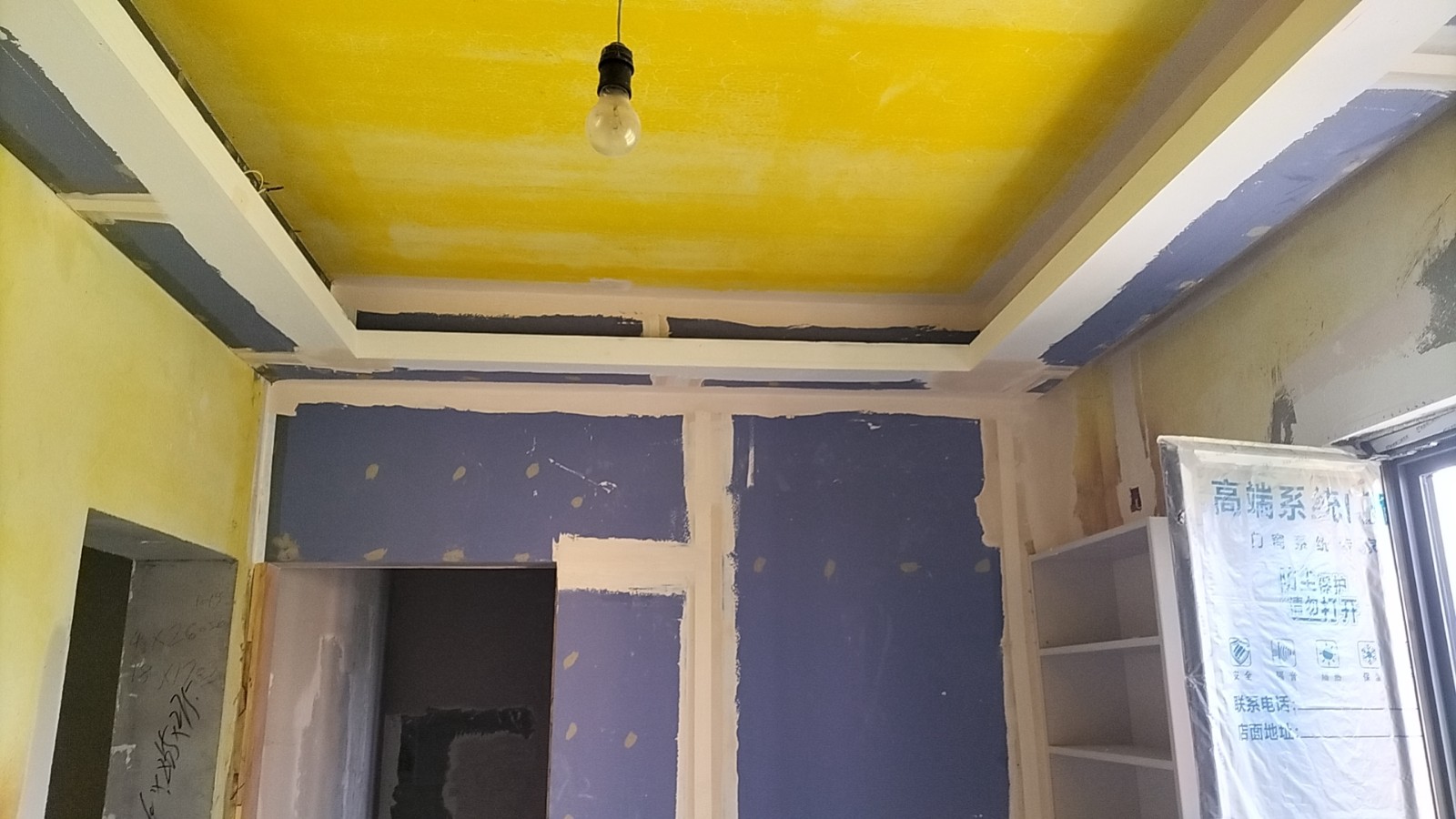 施工阶段:油漆阶段,第二遍乳胶漆完成,等待干透后刷第三遍。