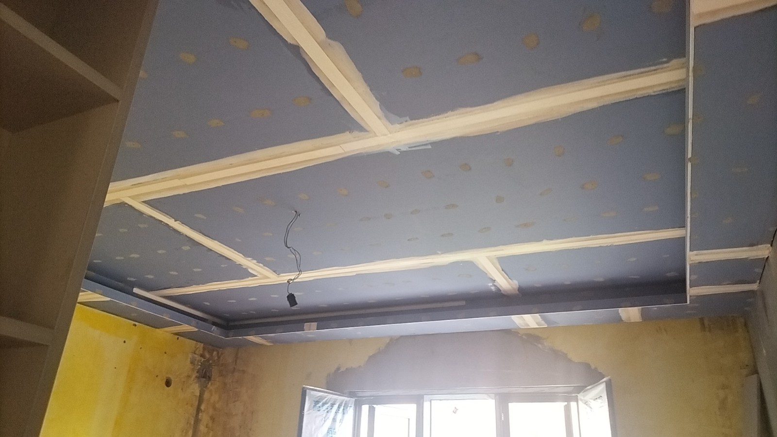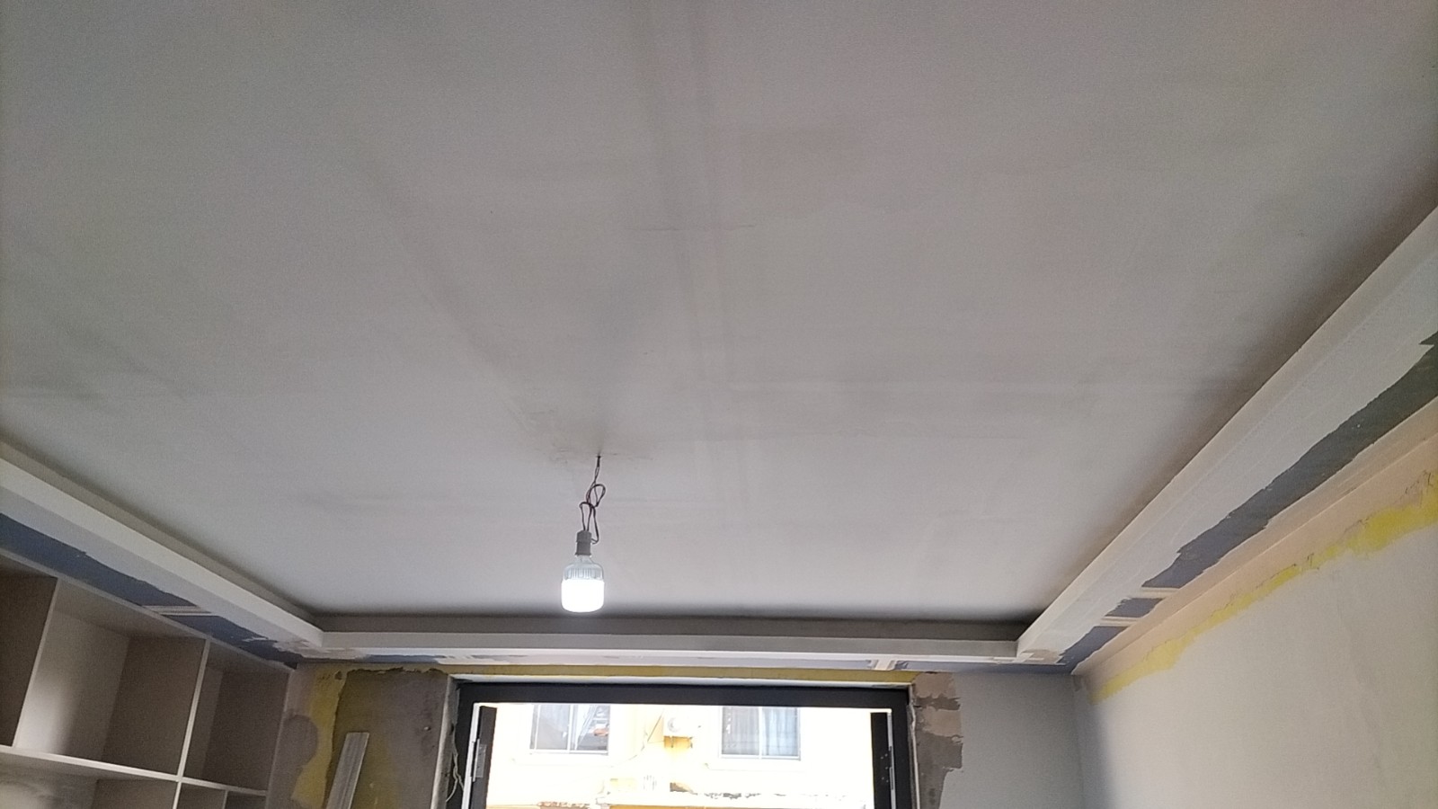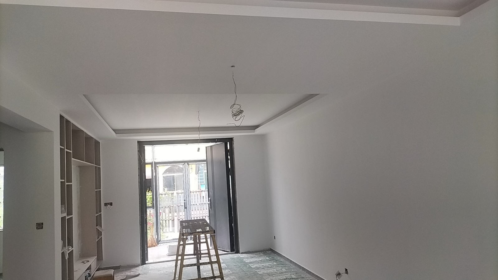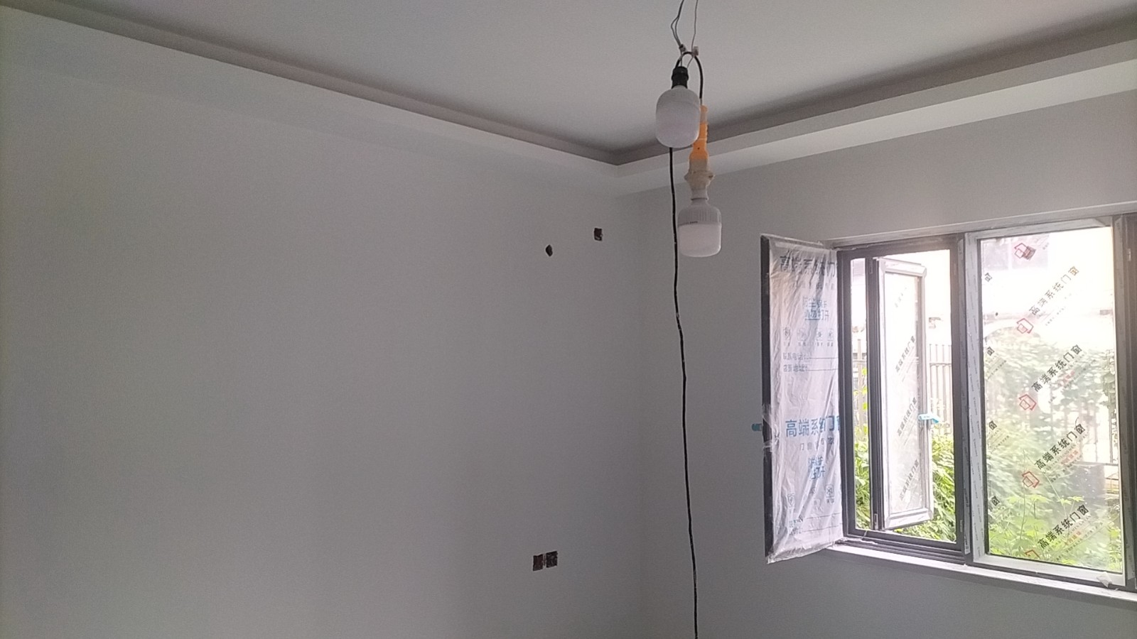 施工阶段:油漆阶段,第二遍乳胶漆完成,等待干透后刷第三遍。