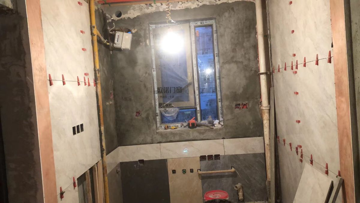 施工阶段:泥木,木工吊顶已完成,今日厨房贴砖进行中,