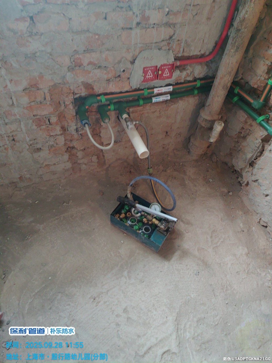 水电进行时,位于殷行路王女士一家的工地正处于水电阶段,水管安装铺设师傅已经完成了水管的施工并且做了水管压力测试,约好装潢网专业监理朱老师于下周二下午1点半进行水电验收