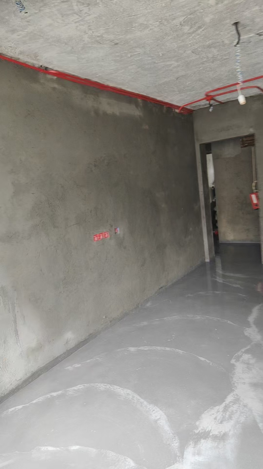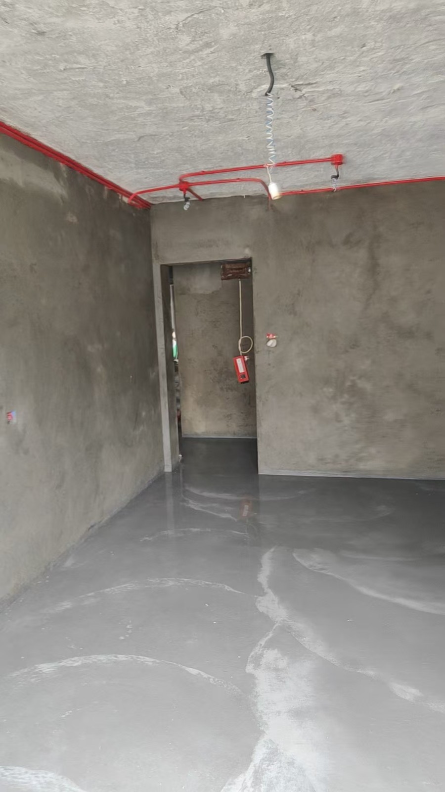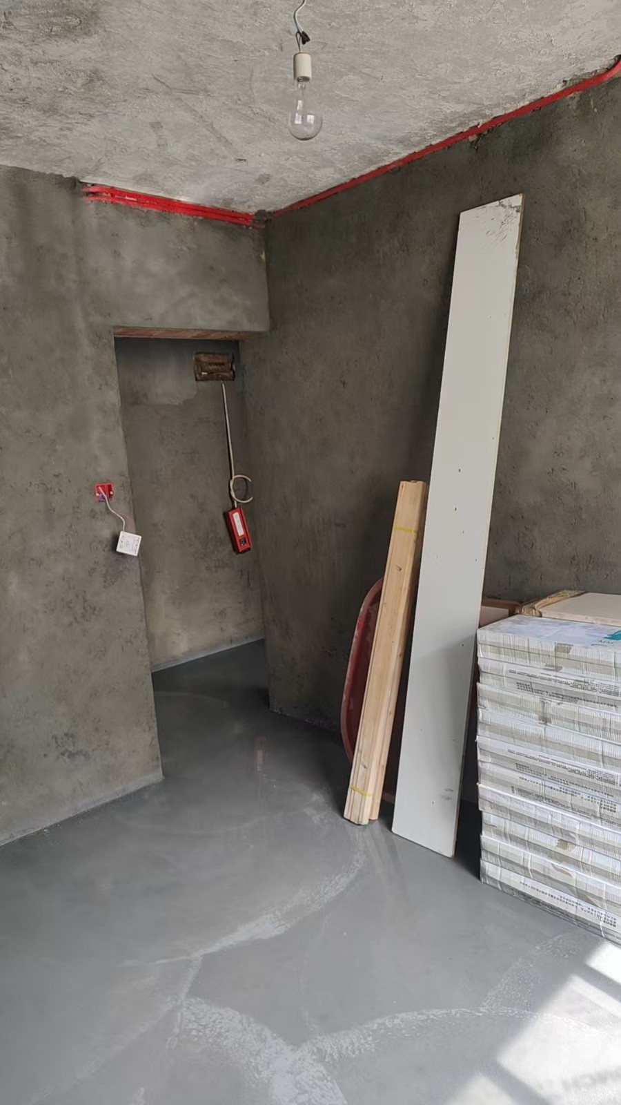 现在大家看到的是房间内的地面找平工艺,为后期瓷砖铺贴做准备,瓷砖铺贴前必须要做好地面找平,避免后期瓷砖铺贴过程中出现不平的情况,地面找平做完之后需要一些时间进行保养
