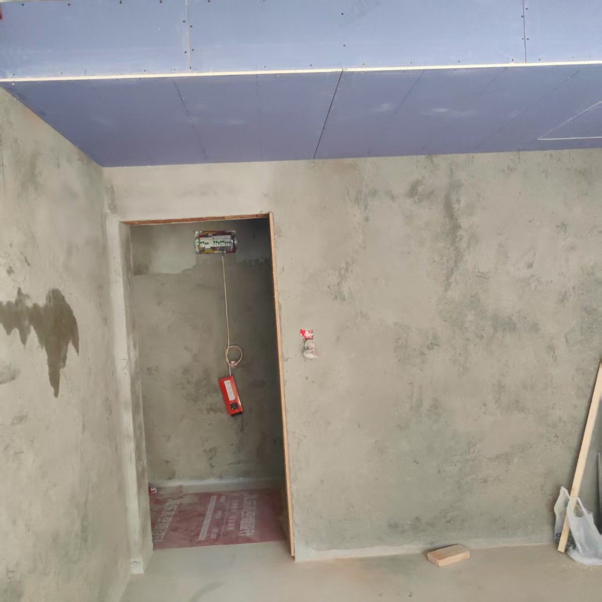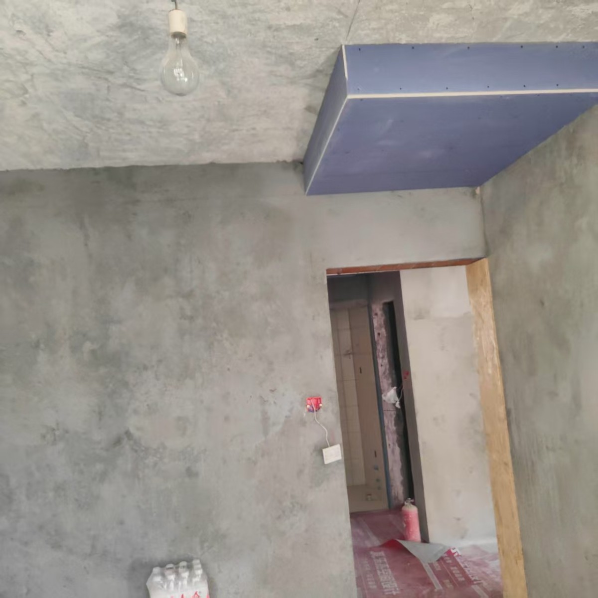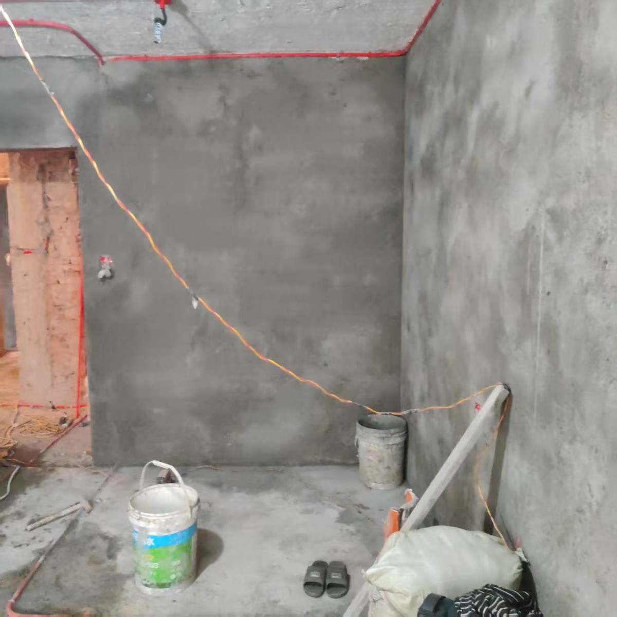 现在大家看到的是房间内的地面找平工艺,为后期瓷砖铺贴做准备,瓷砖铺贴前必须要做好地面找平,避免后期瓷砖铺贴过程中出现不平的情况,地面找平做完之后需要一些时间进行保养