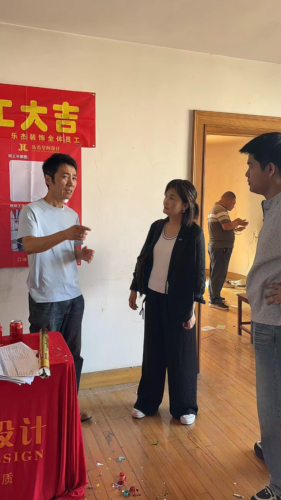 10月9号上午10点18分,吉时吉日,开工大吉,乐杰空间设计为业主准备了一场隆重的开工仪式,也采访了吕先生选择我们乐杰空间设计的初衷,主要是认可我们公司的经营模式,也对乐杰空间设计的操作规范性给予了高度的认可,对于设计师的设计能力以及服务态度都十分满意!让我们一起期待几个月后的完美落地效果