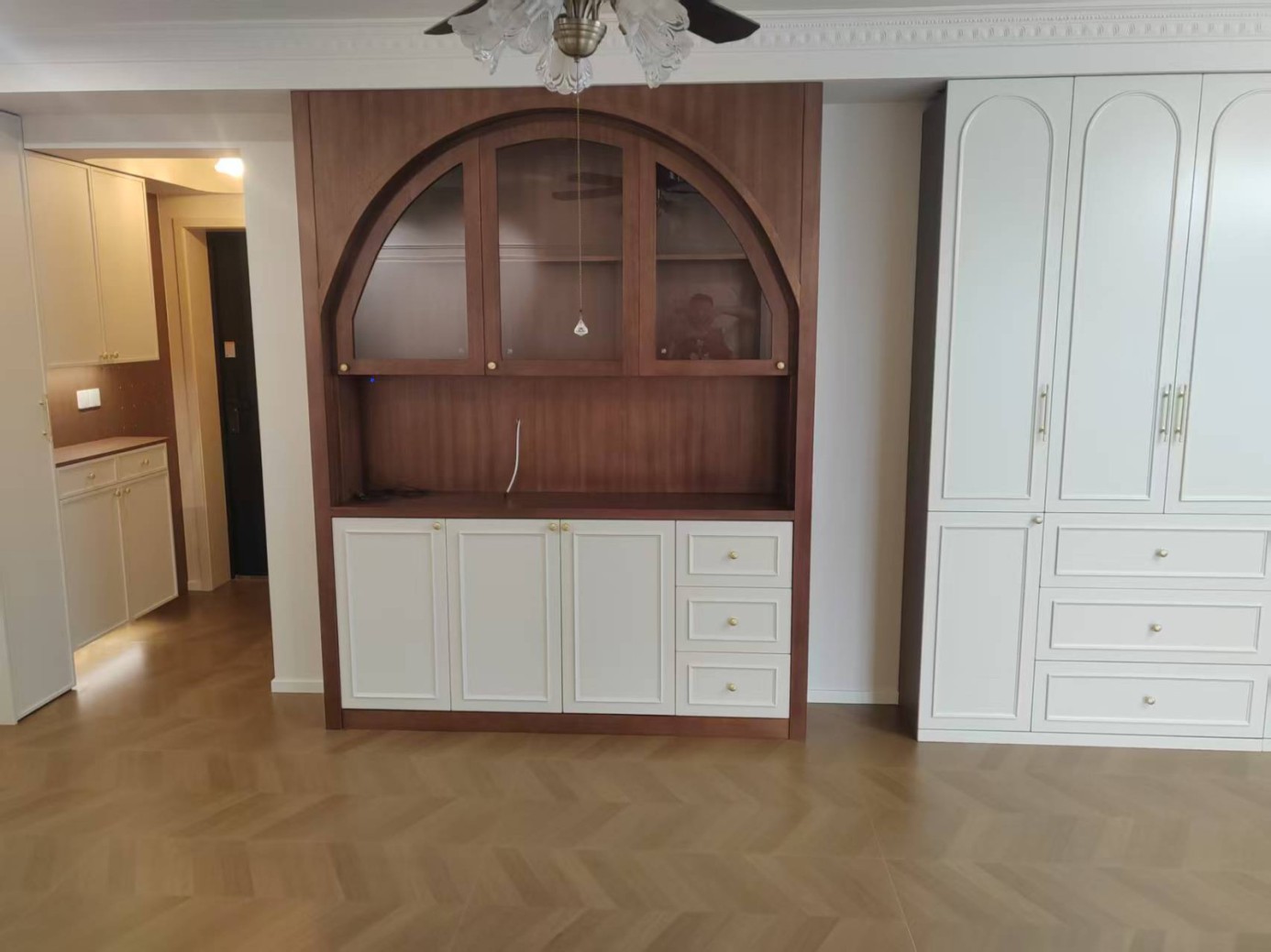 徐家汇路吕先生一家的工地施工阶段已经进入了尤其阶段的尾声,可以看到墙面的部分造型线条已经安装完毕,期待吕先生工地最终的落地效果,乐杰空间设计为您家的装修保驾护航