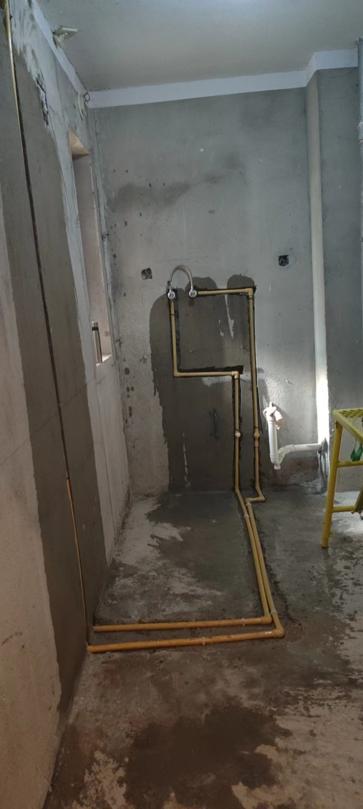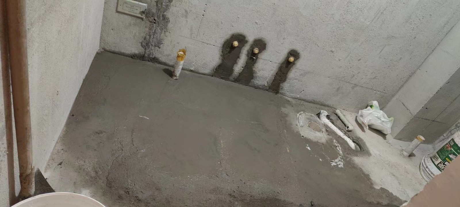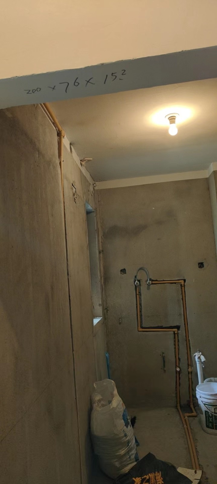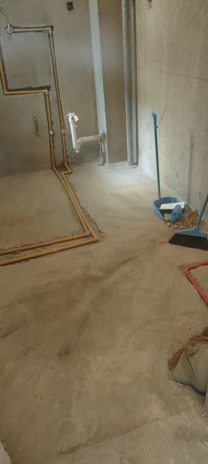 今天(2022-12/13)工程将进入瓷砖铺贴阶段,前期我们将对厨卫墙地面先做修粉找平,即而将做好卫生间防水施工(东方雨虹柔性防水涂料两遍和地面的闭水处理),同时将为业主做免费的齐梁吊石膏板平顶和原门洞木工板矫正施工。