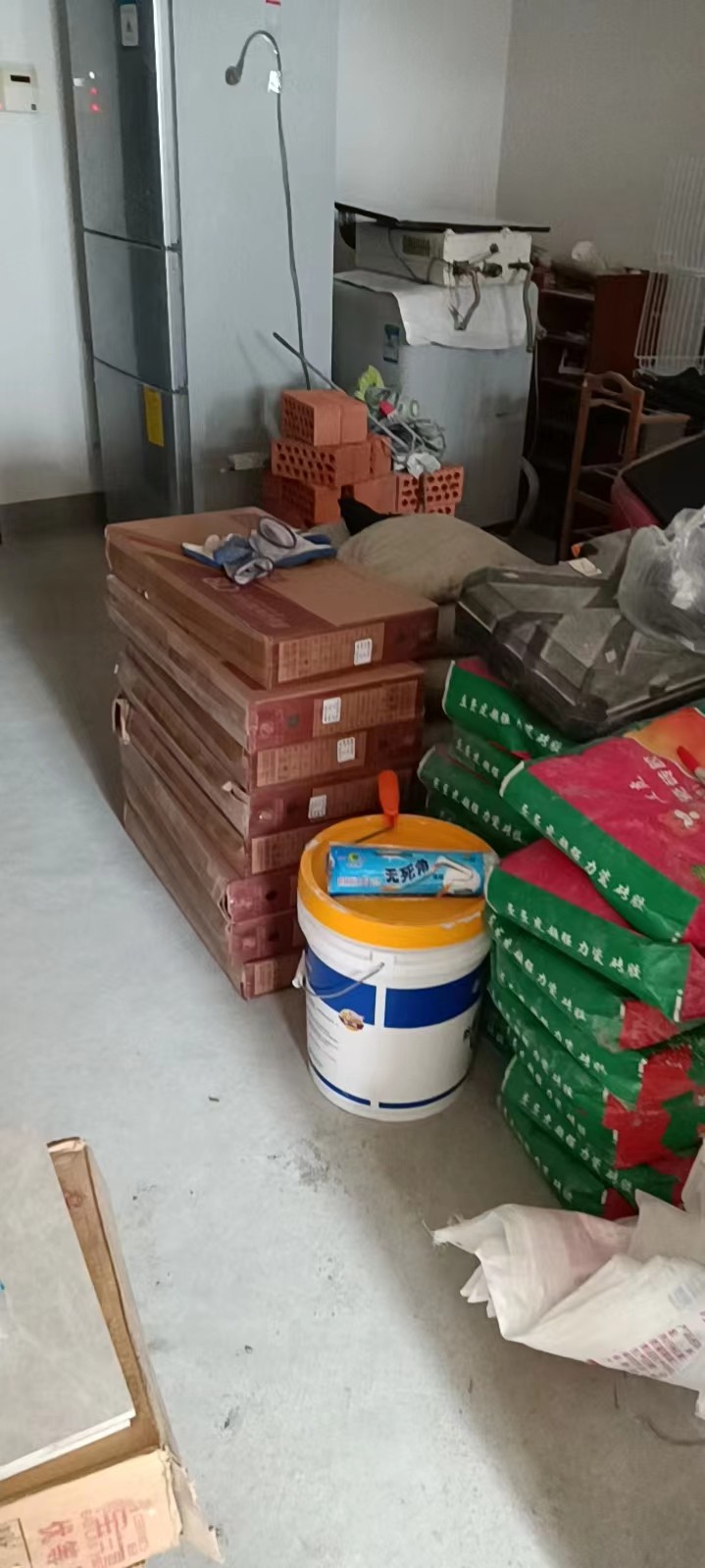 今天整理了每个房间的家具,拆开后放到装修不易触碰到的小阳台上,机器打洞下午全部完成,明天水电工过来布线有局部开水管线槽,