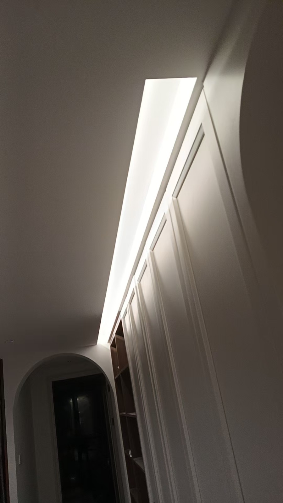 业主洪先生家油漆施工阶段现已经结束了,油漆工程也是施工项目中重中之重,一遍强固,一遍石膏,两遍腻子,一遍底漆,两遍面漆,每个步骤做完一定要关窗自然阴干,干透后再进行下一遍,防止墙面开裂、反碱起皮,吊顶上有钉眼的地方一定要先刷防锈漆,墙面所有缝隙先用嵌缝石膏填补,吊顶接缝处先用嵌缝石膏填缝再贴两层绷带,防止开裂。,乳胶漆完成后后续就是安装阶段啦,新家一天一个摸样,感谢陈先生从开工到现在配合与支持,侨鸿定当交给您一个温暖的家!