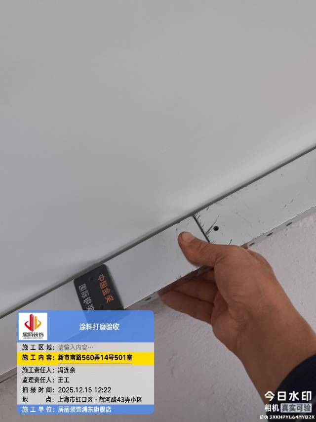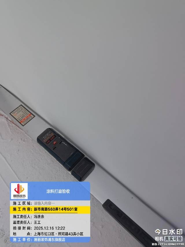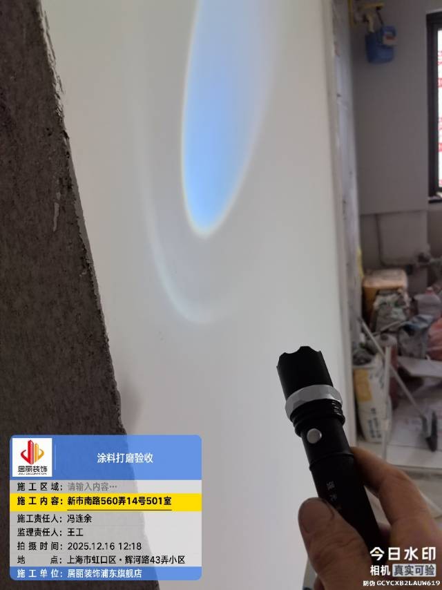 2025 年 12 月 1 日下午,上海装潢网资深监理邱老师与杨老师组成专项检查小组,针对平台核心网络监督单位 —— 沪尚优工正处于泥木施工阶段的在施工地,开展突击验收工作。此次检查聚焦泥木工艺关键环节,遵循 “无预告、全透明、严标准” 原则,旨在通过实地核验强化网络监督效能,切实保障业主装修核心阶段品质,让装修过程在阳光下运行。