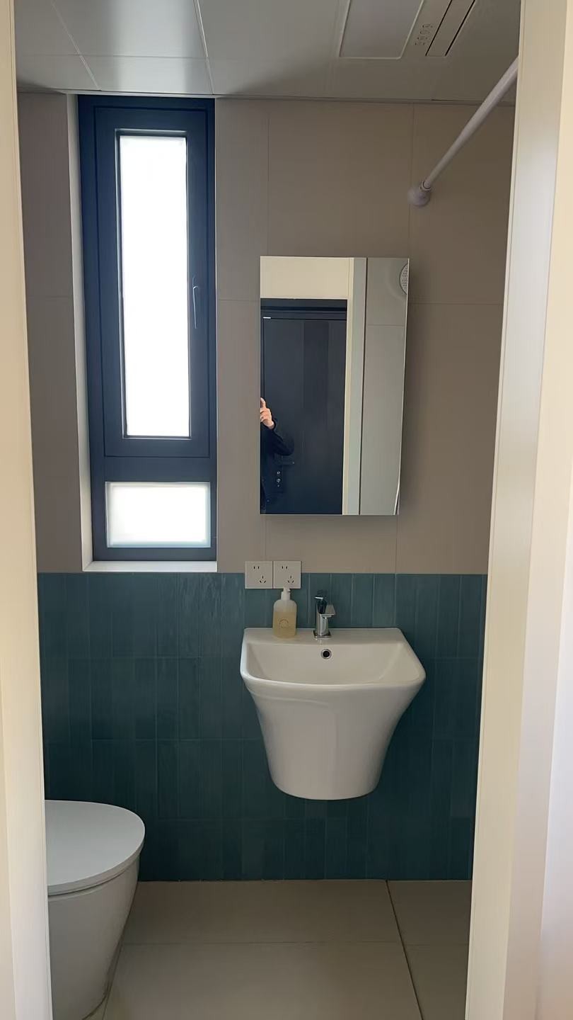 卫生间移门门框垂直度偏差,门体歪斜;移窗密封胶条脱落,窗扇锁闭功能失效;马桶后方三角阀周边打胶不密实、不平整;干区台盆右侧与墙体缝隙大小不一,收口不美观。