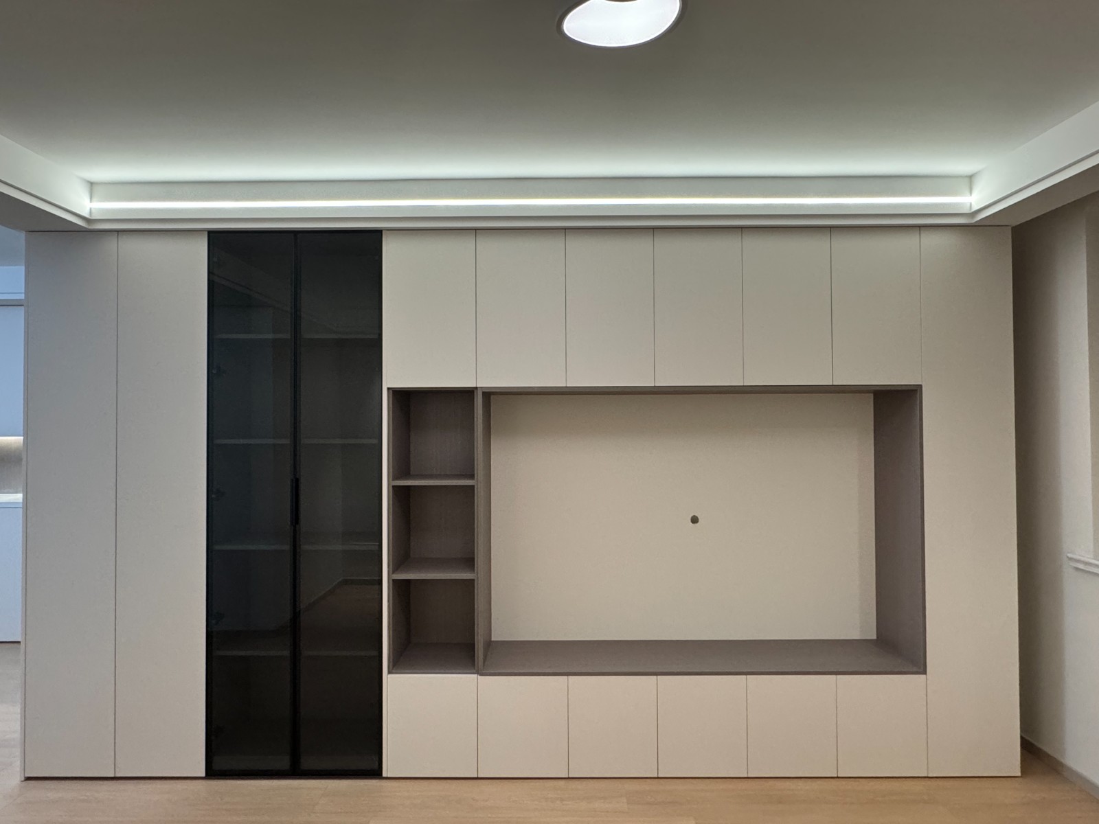 木工吊顶平整度1毫米内,∨字缝,符合行标准可以进行下一阶段施工