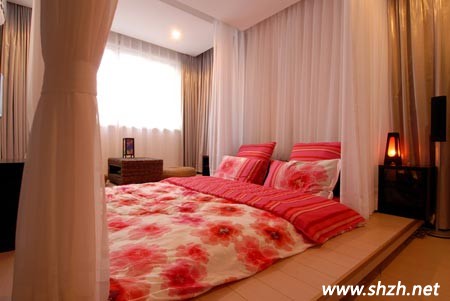 给卧床设置围幔,将卧室的床的用布帘隔起来,或者在床的四周设置围幔或蚊帐,这样会使夫妻双方**迸发,感情甜如蜜。