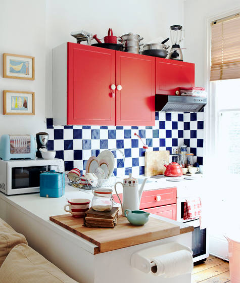 小小空间里的厨房一应俱全,虽然空间很小,但是在色彩的区分冲击下,丝豪没有压迫感。