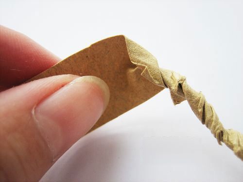 接下来呢把这纸条朝一个方向拧,拧成纸绳。