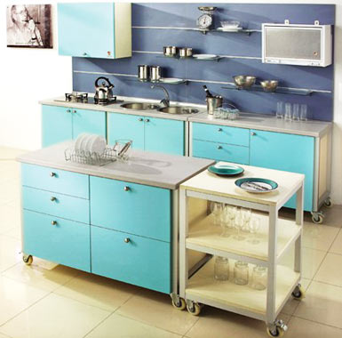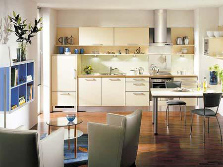 许多房屋套型设计面积并不很宽敞,尤其是厨房,因其实用性非常强,狭小的空间常使人感到杂乱无章,拥塞和压抑。其实,只要稍加设计、在实用的基础上适当添加艺术的环境,注意色彩的协调、厨具的配置合理性,这种局面是完全可以改观的。