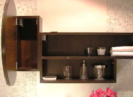 表面看是一面挂在墙上的普通镜子,其实后头暗藏玄机,打开镜子你会发现在里面还设计了一个储藏柜;足以容纳各种洗漱用品,即使偶尔摆放的杂乱无章,只要关上“门”,眼前立刻干干净净。空间也随之扩展了不少。