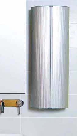 镜子一侧的墙面上是一个铝合金制成的圆柱形装置,看上去像是太空舱。