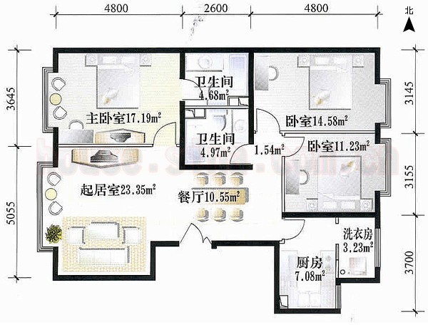2.主要的活动区域客厅朝西,房间的日晒强烈。