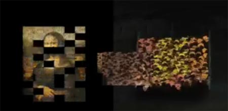 接下来的画面更令人惊叹:身披五颜六色发光二极管“外套”的羊聚集在一块方形场地里,乍看之下并没有什么特殊之处。但随后画面揭示,每群羊都构成作品的一小部分,全部拼好后,竟然组成了达芬奇的名画《蒙娜丽莎》。