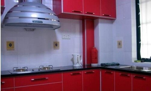 家里的地方比较小,怎么让厨房大起来呢?我们在设计之初可以多方考证的,上下双排柜子,把空间的容量加大,所有的东西都可以藏起来,使用起来也比较方便,同时,整体颜色只采用红白两色相间:总的感觉是红的热烈,表现的是对于美好生活追求的态度,白色冷静,暗藏待人接物的哲理,这是不是让这个空间,一下子就与别人的不一样起来了?