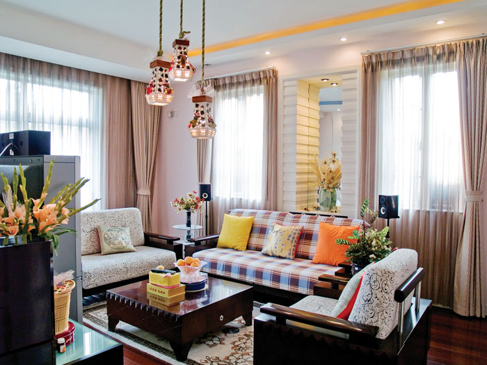 辅助照明泛指立灯、壁灯、台灯等尺寸较小的灯具,能够加强光线的层次感。壁灯大多安装在门厅、走廊等部位,主要起引导作用。使用造型独特的壁灯装饰角落也会别有一番雅趣。立灯(落地灯)也是经常使用的辅助照明,立灯直接向下投射,适合阅读等需要精神集中的活动。如果是间接照明,可以交互搭配出不同的光线变化。使用立灯时需要考虑客厅的高度,如果过低,光线只能集中在局部区域,会使人感到光线过亮。立灯具有移动方便的优点,能够很好地营造出角落气氛,并且十分实用。