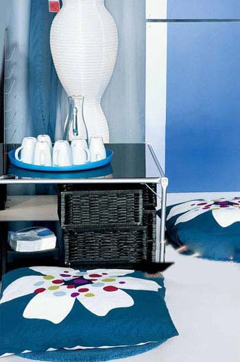 松软的布艺坐垫,可以放置在地毯或木地板上的任意地方,舒适而随意,同时灰蓝的色彩以及花朵的图案,带来自然亲和的氛围。