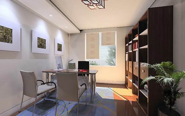 书房对自然采光的要求较高,应尽量将书房设计在采光和朝向好的房间。书桌的摆放位置也需要依据窗户的位置决定,充分考虑到光线的角度,争取做到既要采光好,又要避免光线直射造成眩光。如果在书房中运用人工照明,应该把握明亮度、均匀和柔和的原则。可在书房的中央安装乳白色罩的白炽吊灯为主体照明,最好60瓦左右,太暗有损眼睛健康,太亮则刺眼。在书桌上设置一盏可调节光度的台灯作为局部照明,以便于阅读或写作。