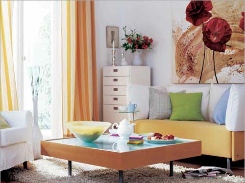 东向客厅宜选用黄色作为主色调,颜色深浅的选择,则由屋主根据自己的喜好来定,黄色于东方,有招财的效果;