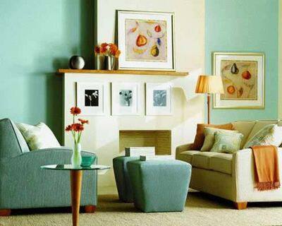 光是从玄关进入餐厅的角度来看,一个小小的用餐空间,就存在着火红、天蓝、粉橘……等三--四种颜色不等,而蓝绿色的天花板,与墙面同一色调的画作,是设计师有意让视觉延伸与对应,使色彩表现出一种立体的趣味。