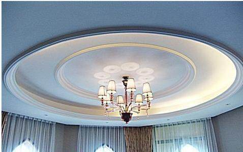 假天花为迁就屋顶的横梁而压得太低,无论在风水方面或设计方面均不宜。在这种情况下,可采用四边低而中间高的假天花布置,这样一来,不但视觉较为舒服,而且天花板中间的凹位便会形成聚水的天池,对住宅风也会大有裨益。若在这聚水的天池中央悬挂一盏金碧辉煌的水晶灯,则会有画龙点晴之妙,但勿在天花板上装镜,此乃风水大忌。