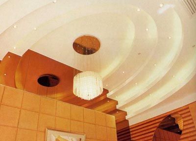 假天花为迁就屋顶的横梁而压得太低,无论在风水方面或设计方面均不宜。在这种情况下,可采用四边低而中间高的假天花布置,这样一来,不但视觉较为舒服,而且天花板中间的凹位便会形成聚水的天池,对住宅风也会大有裨益。