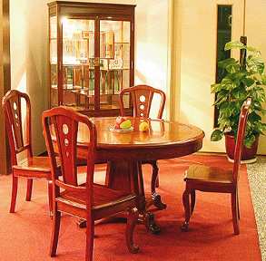 在餐厅之中,最重要的家具当然首推餐桌,而现代的餐桌与古代相比,有了实质性的变化,在古代,大多实行分桌而食,餐桌亦称为食案,就餐者人各一案,食案大都小巧轻便,所以才会出现汉代梁鸿之妻孟光与其相敬如宾,日日为他“举案齐眉”奉食的佳话,而在现代,“举案齐眉”几乎是不可能的,因为现代的餐桌普遍体量较大而且沉重,将就餐者聚集在一起,作共同进餐之用,因此餐桌的风水对家庭团圆、夫妻和睦的影响很大,特总结以下十大注意事项:1、餐桌宜选圆形或方形:中国的传统宇宙观是“天圆地方”,因此日常用具大多以圆形及方形为主,传统的餐桌便是典型的例子。传统的餐桌形如满月,象征一家老少团圆,亲密无间,而且聚扰人气,能够很好地烘托进食的气氛,早已深入人心。至于方形的餐桌,小的仅可坐四人,称为四仙桌;大的可坐八人,又称八仙桌,因它象征八仙聚会,也很吉利,方正平稳,象征公平与稳重,虽然四边有角,但因不是尖角而无杀伤力,因此被人乐于采用。由于餐桌的形状会影响进膳的气氛,所以木制的圆桌或正方桌在家庭人口较少时适宜,而椭圆或长方桌在人口较多时适用。