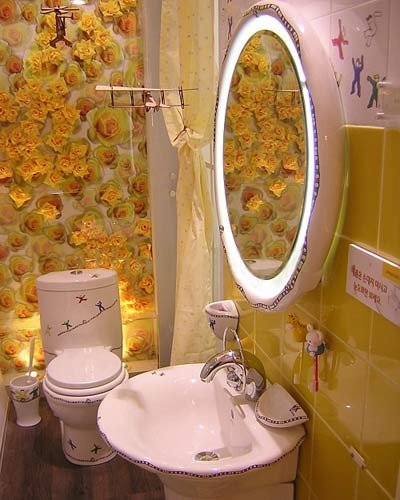 有些人喜欢在卫生间时砌一个盆台,盆台高出地面一两个台阶,然后将浴盆嵌在盆台里。这样的格局的确非常漂亮,但是,建议你最好不要在卧室所套的卫生间里采用这种格局,根据中国传统风水学的原理,卫生间的地面不能高于卧室的地面,尤其是浴盆的位置不能有一种高高在上的感觉。五行学说认为,水是向下流的,属润下格,长期住在被水滋润的卧室里,容易发生内分泌系统的疾病。因此,如果你喜欢这样的嵌入式浴盆,可以将它安置在另一间离卧室较远的卫生间内。对于有窗的卫生间,也可以摆放一些绿色植物,在风水上可以缓和气氛,聚集生气。不过,由于卫生间湿气大,冷暖温差也大,所以,在选择绿色植物时一定要注意,应尽量选择耐湿性的观赏绿色植物,以吸纳污气。比如,蕨类植物、垂金榕、黄金葛等。