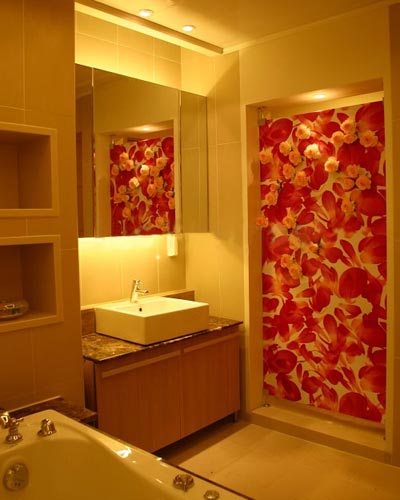 如果卫生间较大,可将便器安排在自门口处望不到的位置,隐于矮墙、屏风和布帘之后,当然还要确保从任何镜子上都看不见它。不过,在一般的住宅中,卫生间的排污口已经定位,不易改动。如果要改变便器的朝向,就一定要十分注意排污管的坡度,以免堵塞。除了便器,在卫生间占据重要地位的莫过于浴盆。